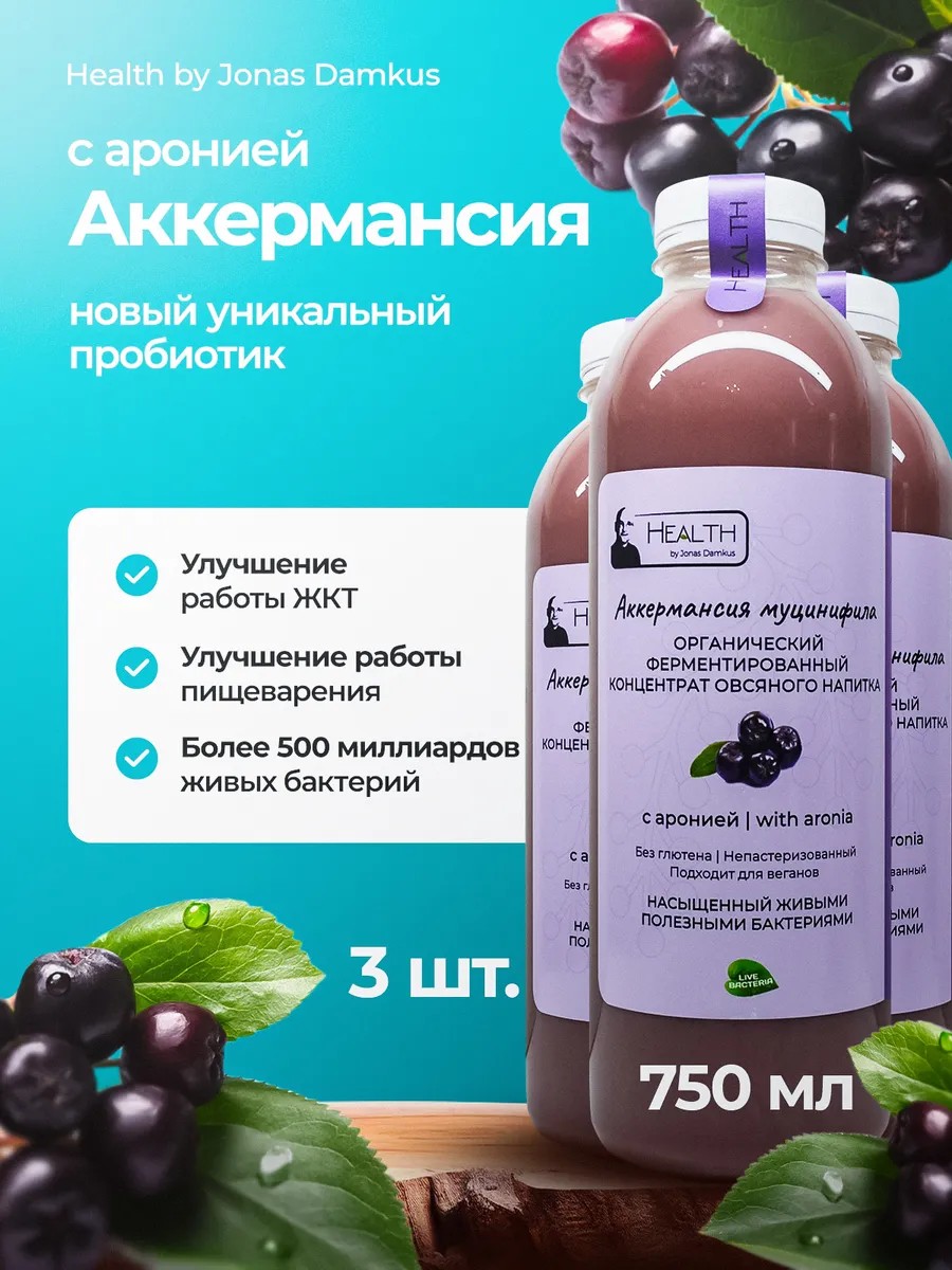 Health by Jonas Damkus Аккермансия, овсяный напиток с аронией, 750 мл, 3 шт.