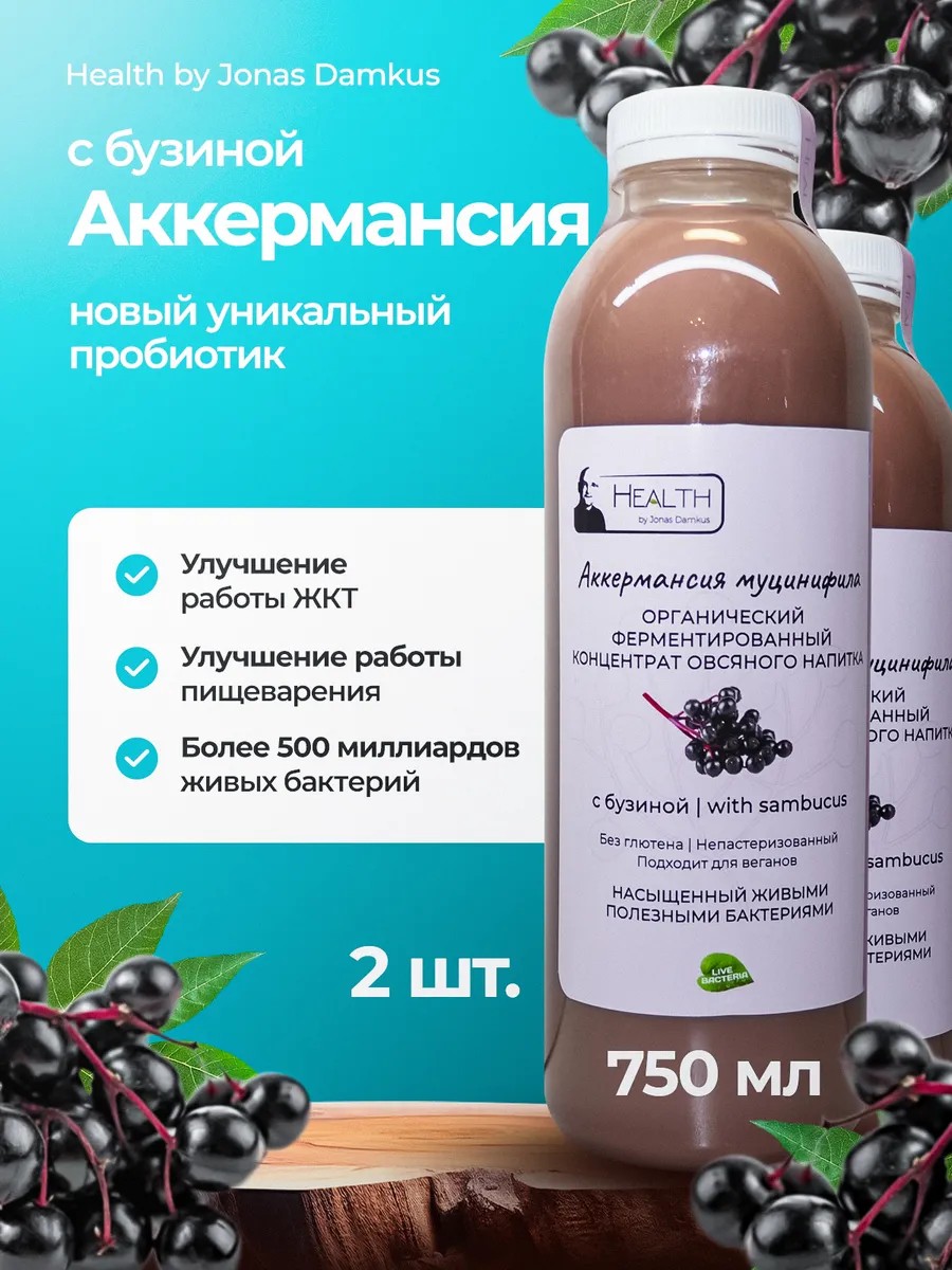 Health by Jonas Damkus Аккермансия, овсяный напиток с бузиной, 750 мл, 2 шт.