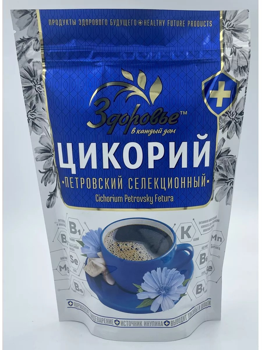 Купить цикорий Здоровье можно в упаковке дой-пак по 100 грамм. Упаковка содержит 12 порций напитка. Цикорий производится в России и соответствует высоким стандартам качества.