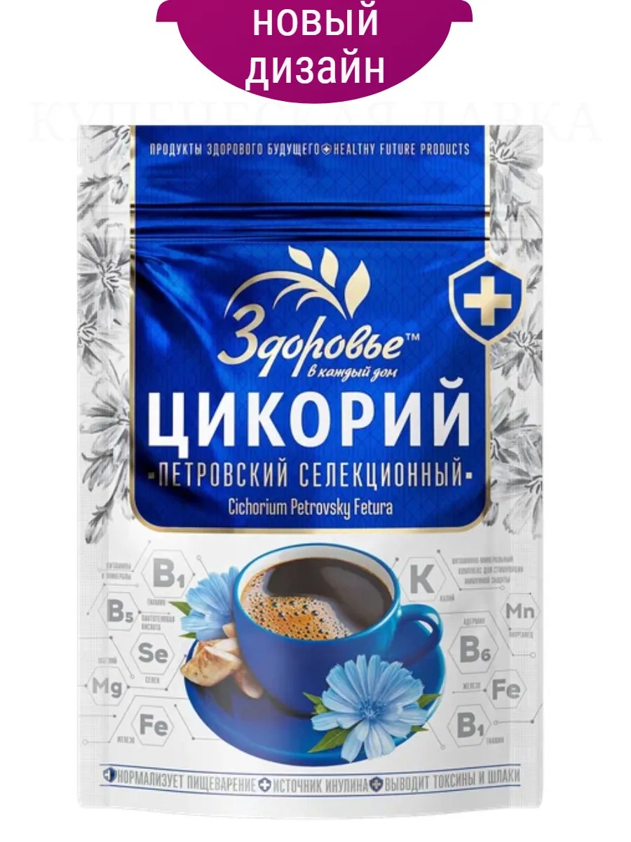 Цикорий натуральный растворимый гранулированный Здоровье Петровский селекционный 100 гр изготовлен из натурального корня цикория. Высокое содержание инулина более 30 %. Соответствует ГОСТ. Отмечен знаком качества "Сто лучших товаров России". Не содержит кофеин и не повышает артериального давления. Без глютена. Инулин (растительное пищевое волокно), содержащийся в корне цикория, улучшает микрофлору кишечника, стимулирует рост и активность полезных бифидобактерий. Не содержит ГМО. ВНИМАНИЕ: изменился дизайн упаковки