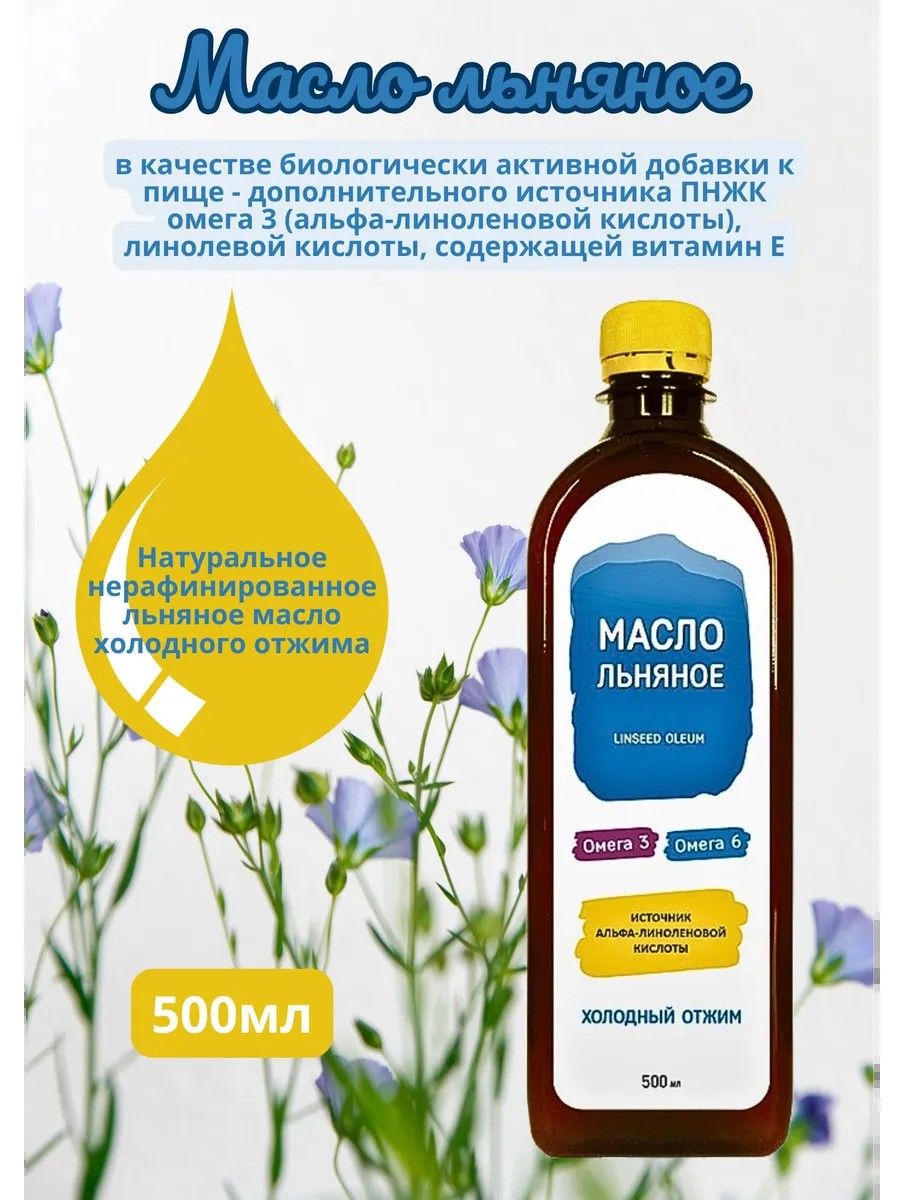 | Комплектация | Масло льна пластиковая бутылка 500мл |