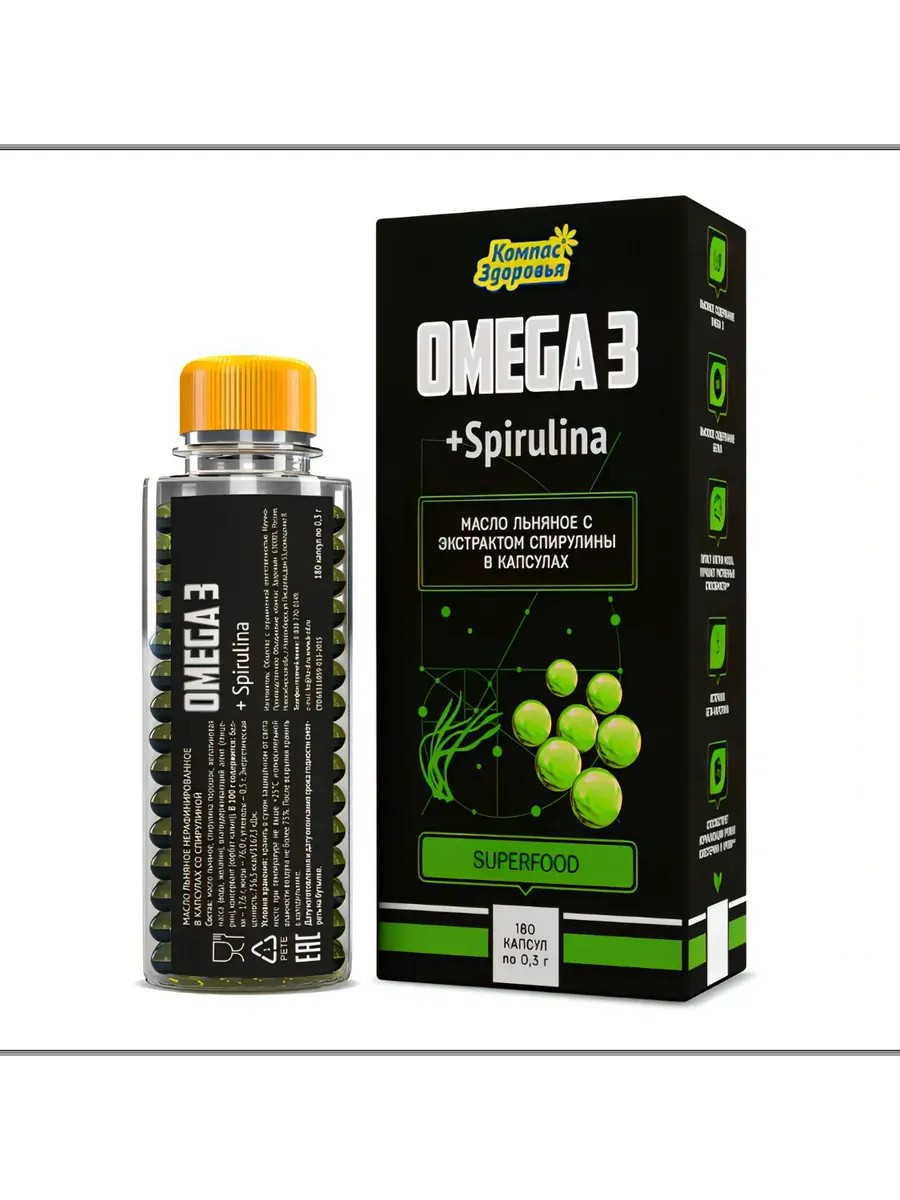 КомпасЗдоровья Масло льняное с добавлением "Спирулины" (капсулы) 180 шт