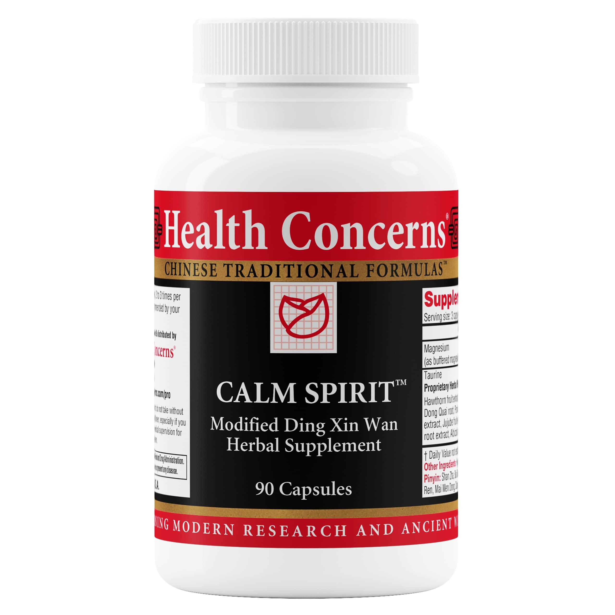 Health Concerns Calm Spirit - Stress Relief Supplement for Men & Women - Herbal Calming Support - Eases Tension & Nervousness - Magnesium Hawthorn Chinese Peony & Taurine - 90 Capsules 90 Count (Pack of 1)