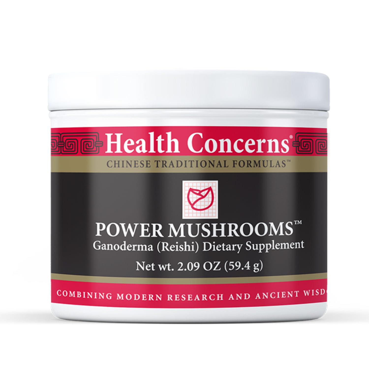 Health Concerns Power Mushrooms is a powerful practitioner-formulated mushroom supplement designed to support immune system health and overall vitality. This traditional Chinese herbal blend features extracts from Reishi (Ganoderma lucidum), Tremella, Maitake, and Poria mushrooms, known for their adaptogenic and immune-supporting properties. These mushrooms work synergistically to tonify Qi and Yin, benefiting the lungs, stomach, spleen, and kidneys according to traditional Eastern medicine. Each 2.09 oz jar delivers 30 servings of energizing mushroom powder made from the fruiting bodies—not mycelium—ensuring maximum bioavailability and potency. Simply stir ½ teaspoon into hot water or tea between meals. Free from unnecessary fillers and made in the USA with globally sourced ingredients, Power Mushrooms reflects Health Concerns' dedication to integrating ancient herbal traditions with modern clinical research.