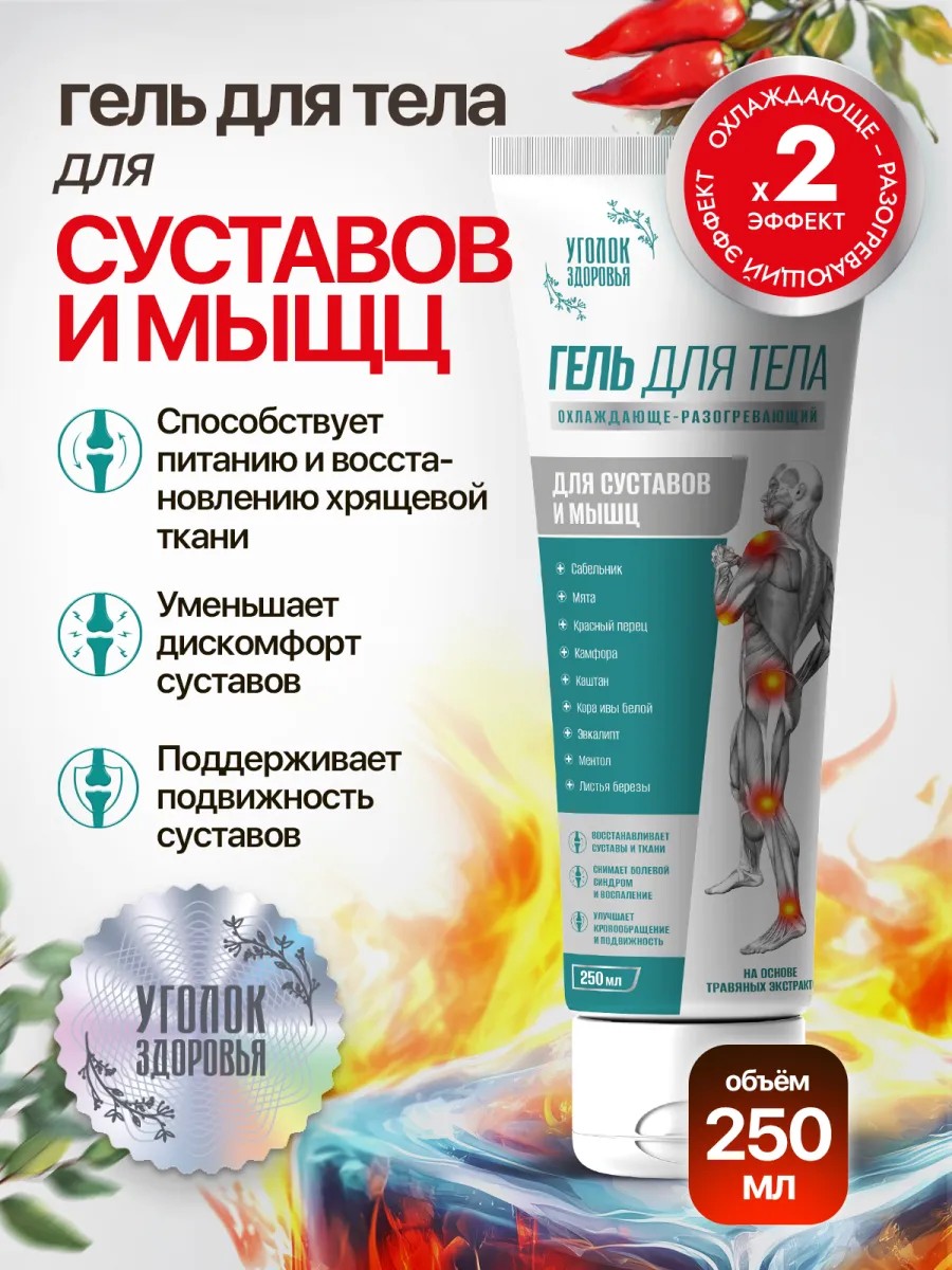 Гель для тела с комплексом натуральных активных компонентов является незаменимым помощником при болевых ощущениях в области суставов, мышц, позвоночника и поясницы, а также при регулярных занятиях спортом, постоянных физических нагрузках, защемлениях и ушибах.