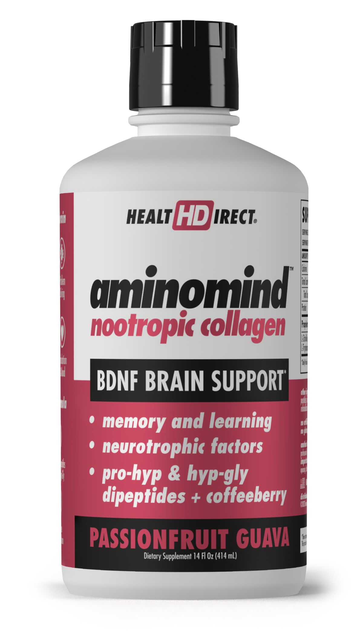 HEALTH DIRECT - AminoMind - Nootropic Collagen Supplement for Brain Health and BDNF - Pro-Hyp & Hyp-Gly Dipeptides Coffeeberry Antioxidants - Passionfruit Guava - 14 Fl Oz (28 Servings)