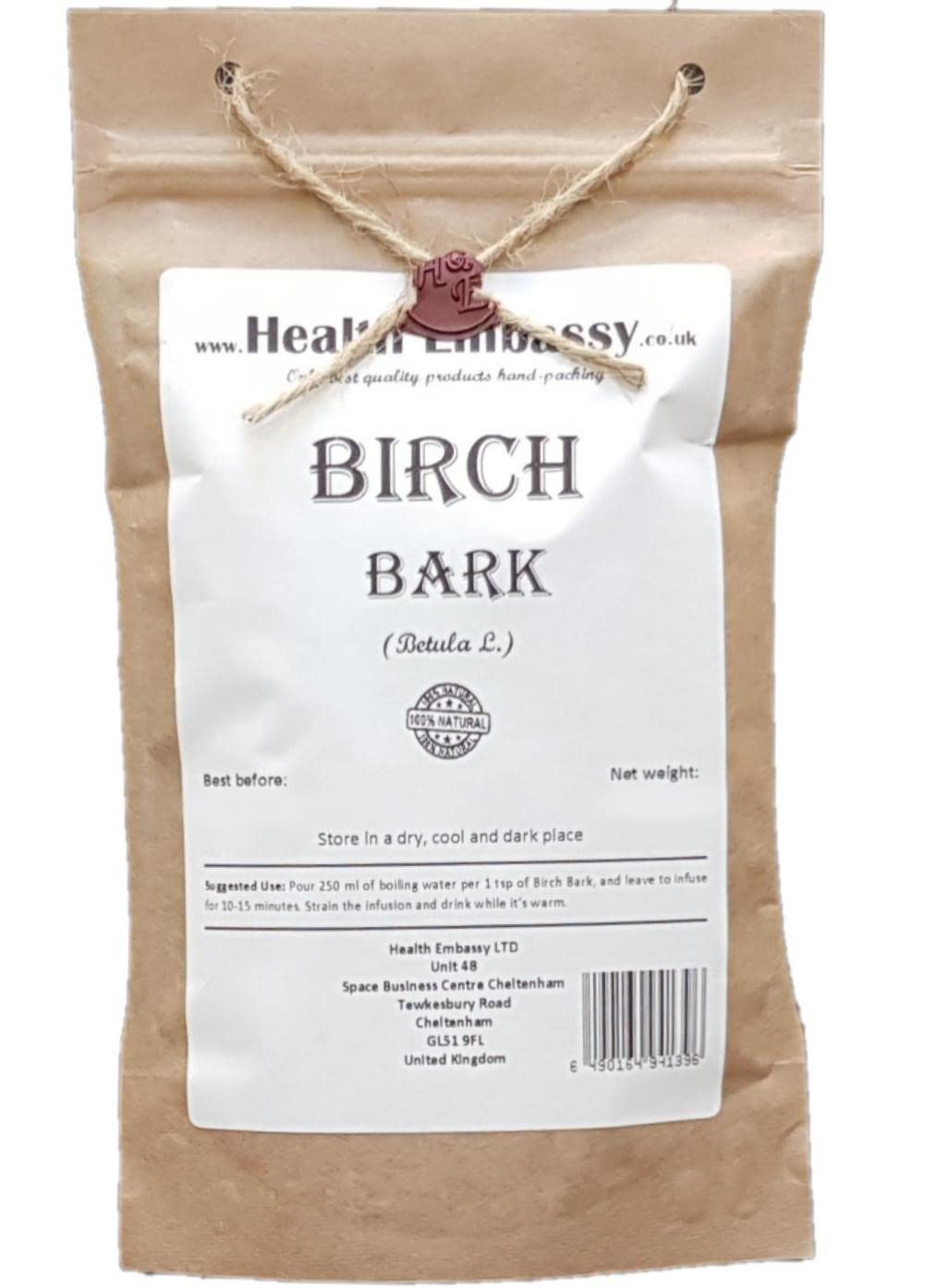 Health Embassy Birch Bark is a natural health supplement made from birch bark, a traditional ingredient known for its many health benefits. This high-quality supplement is rich in betulin, a compound found in birch bark that has anti-inflammatory and antiviral properties. Health Embassy Birch Bark is also rich in antioxidants, which help support overall health and well-being. This supplement is an excellent addition to a healthy lifestyle and can be easily incorporated into your daily routine. To prepare tea from Health Embassy Birch Bark, bring a pot of water to a boil and add 1 to 2 teaspoons of Health Embassy Birch Bark per cup of water. Reduce the heat and let the mixture steep for 10 to 15 minutes. Strain the tea and sweeten with honey or other natural sweeteners if desired. INGREDIENTS 100 Birch Bark