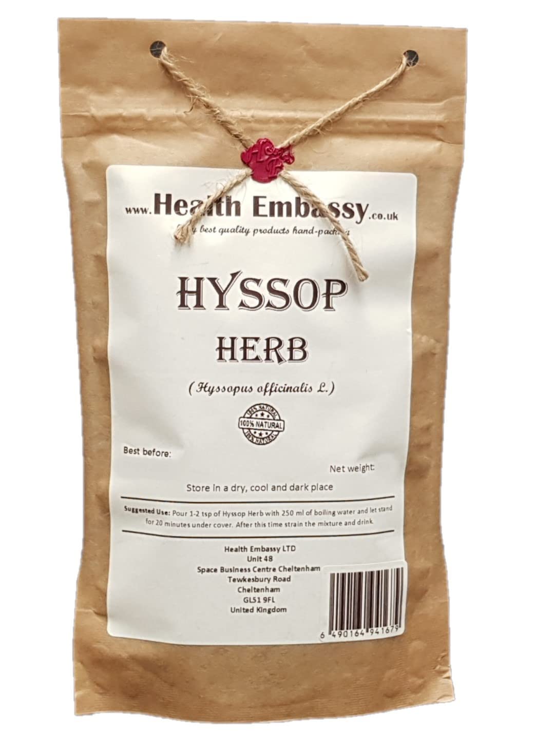 Explore the authentic taste of Hyssop with this product from Health Embassy. Our pure and natural Hyssop is meticulously selected for its exceptional quality. Adapt its use to your preferences, whether for homemade infusions, decoctions, or other applications. Enjoy the potential benefits of this versatile herb, long recognized for its unique properties. Immerse yourself in the very essence of Hyssop with this product from Health Embassy, your trusted partner for quality herbs. INGREDIENTS HyssopTrusted Herbal Partner Health Embassy Hyssop Herb is your reliable ally for premium quality herbs, allowing you to experience the essence of this herb with complete confidence. Perfect for Gifting Health Embassy Hyssop Herbal Tea makes a thoughtful and unique gift. Share the authenticity of this exceptional herb with friends or loved ones, offering them a versatile and superior herbal experience. Create Your Own Blends Combine Health Embassy Hyssop Herb with other herbs such as mint or sage to create unique blends tailored to your taste preferences. Potential Wellness Support Explore the potential benefits of Health Embassy Hyssop Herb, renowned for its versatility and historical associations with various aspects of wellness. Quality Selection This product is carefully chosen to meet high-quality standards, reflecting Health Embassy's commitment to excellence in its herbal offerings. Versatile Use Adapt the use of Hyssop Herb to your preferences, whether for homemade infusions, decoctions, or other applications, offering flexibility in its integration into your wellness routine. Herbal Tradition Embrace the long-standing recognition of Hyssop Herb for its unique properties within traditional herbal practices.Health Embassy Herbe d'Hysope Tisane Hyssopus Officinalis L Hyssop Herb Tea 100gDESCRIPTION DU PRODUIT DESCRIPTION DU PRODUIT Explorez l'authenticité de l'Herbe d'Hysope avec le produit de Health Embassy. Notre Herbe d'Hysope pure et naturelle est méticuleusement choisie pour sa qualité exceptionnelle. Adaptez son utilisation à vos préférences, que ce soit pour des infusions maison, des décoctions, ou d'autres applications. Profitez des bienfaits potentiels de cette herbe polyvalente, reconnue depuis longtemps pour ses propriétés uniques. Imprégnez-vous de l'essence même de l'Herbe d'Hysope avec le produit de Health Embassy, votre allié de confiance pour des herbes de qualité. INGRÉDIENTS Herbe d'HysopePartenaire Herbacé de Confiance L'Herbe d'Hysope de Health Embassy est votre alliée fiable pour des herbes de qualité premium, vous permettant de vivre l'essence de cette herbe en toute confiance. Parfait pour Offrir L'Herbe d'Hysope Tisane de Health Embassy constitue un cadeau réfléchi et unique. Partagez l'authenticité de cette herbe exceptionnelle avec des amis ou des proches, leur offrant une expérience herbacée polyvalente et de qualité supérieure. Créez vos Propres Mélanges Associez l'Herbe d'Hysope Health Embassy à d'autres herbes telles que la menthe ou la sauge pour créer des mélanges uniques adaptés à vos préférences gustatives. Soutien Potentiel pour le Bien-être Explorez les bienfaits potentiels de l'Herbe d'Hysope Health Embassy, réputée pour sa polyvalence et ses associations historiques avec divers aspects du bien-être. Sélection de Qualité Le produit est soigneusement choisi pour répondre à des normes de haute qualité, reflétant l'engagement de Health Embassy envers l'excellence dans ses offres herbacées. Usage Polyvalent Adaptez l'utilisation de l'Herbe d'Hysope selon vos préférences, que ce soit pour des infusions maison, des décoctions ou d'autres applications, offrant ainsi une flexibilité dans son intégration à votre routine bien-être. Tradition Herbacée Saisissez la reconnaissance de longue date de l'Herbe d'Hysope pour ses propriétés uniques au sein des pratiques herbacées traditionnelles.