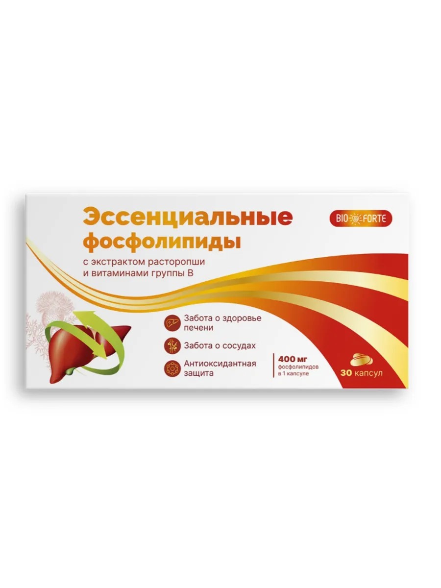 Эссенциальные фосфолипиды BioForte капс - комплекс для поддержки печени и улучшения ее функций. Содержит фосфолипиды, экстракт расторопши и витамины группы B, которые защищают клетки печени, способствуют их регенерации и улучшают обмен веществ. Подходит для детоксикации и восстановления печени.Эссенциальные фосфолипиды с экстрактом расторопши и витаминами группы B - это биологически активная добавка к пище, содержащая ценные компоненты для организма. Фосфолипиды являются неотъемлемым компонентом всех клеточных мембран и, вследствие этого, играют важную биологическую роль в организме, способствуя улучшению обменных процессов печени и помогая стимулировать рост новых клеток. Экстракт расторопши является источником силимарина, который способствует выведению из организма токсических веществ, как поступивших извне, так и образовавшихся в результате метаболизма в самой печени. Кроме того, витамины группы B участвуют в метаболических процессах, повышают устойчивость к стрессу и улучшают работу нервной системы.