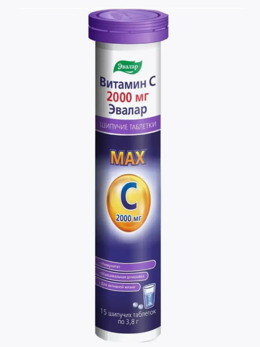 Эвалар Витамин С 2000 мг табл шип - шипучие таблетки с высокой дозой витамина C для укрепления иммунитета, защиты от простуды и повышения энергии. Улучшает состояние кожи, сосудов и общее самочувствие. Подходит для ежедневного применения. Биологически активная добавка (БАД) к пище - сочный напиток с ярким цитрусовым вкусом для укрепления защитных сил организма.