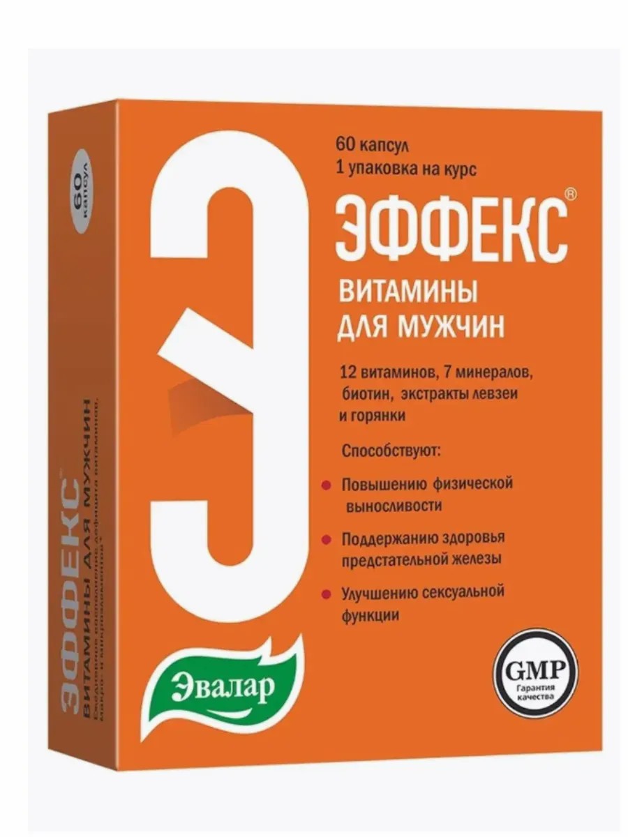 Эффекс Витамины д/мужчин капс - витаминный комплекс, разработанный специально для мужчин. Содержит витамины, минералы и растительные экстракты, которые поддерживают физическую и умственную активность, укрепляют иммунитет и улучшают репродуктивное здоровье. Подходит для ежедневного применения. Эффекс витамины для мужчин - это биологически активная добавка (БАД) к пище, созданная специально для укрепления организма мужчин. В составе капсул содержится комплекс витаминов и минералов, необходимый для поддержания здоровья мужчин. Этот комплекс способствует повышению физической выносливости, поддержанию здоровья предстательной железы, улучшению сексуальной функции. Выпускаются в удобной форме капсул, которые легко принимать и легко усваиваются организмом. Они станут идеальным решением для мужчин, которые хотят вести активный образ жизни и сохранять своё здоровье в отличном состоянии.