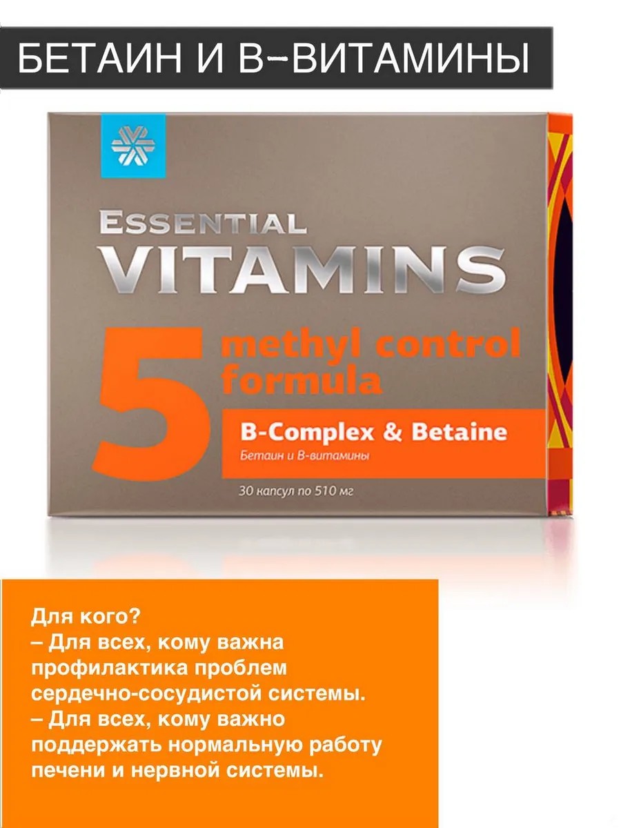 Комплекс «Бетаин и В-витамины» активирует естественную защиту организма, поддерживая здоровье сердца, печени и нервной системы. Выбирайте свой рецепт долголетия!