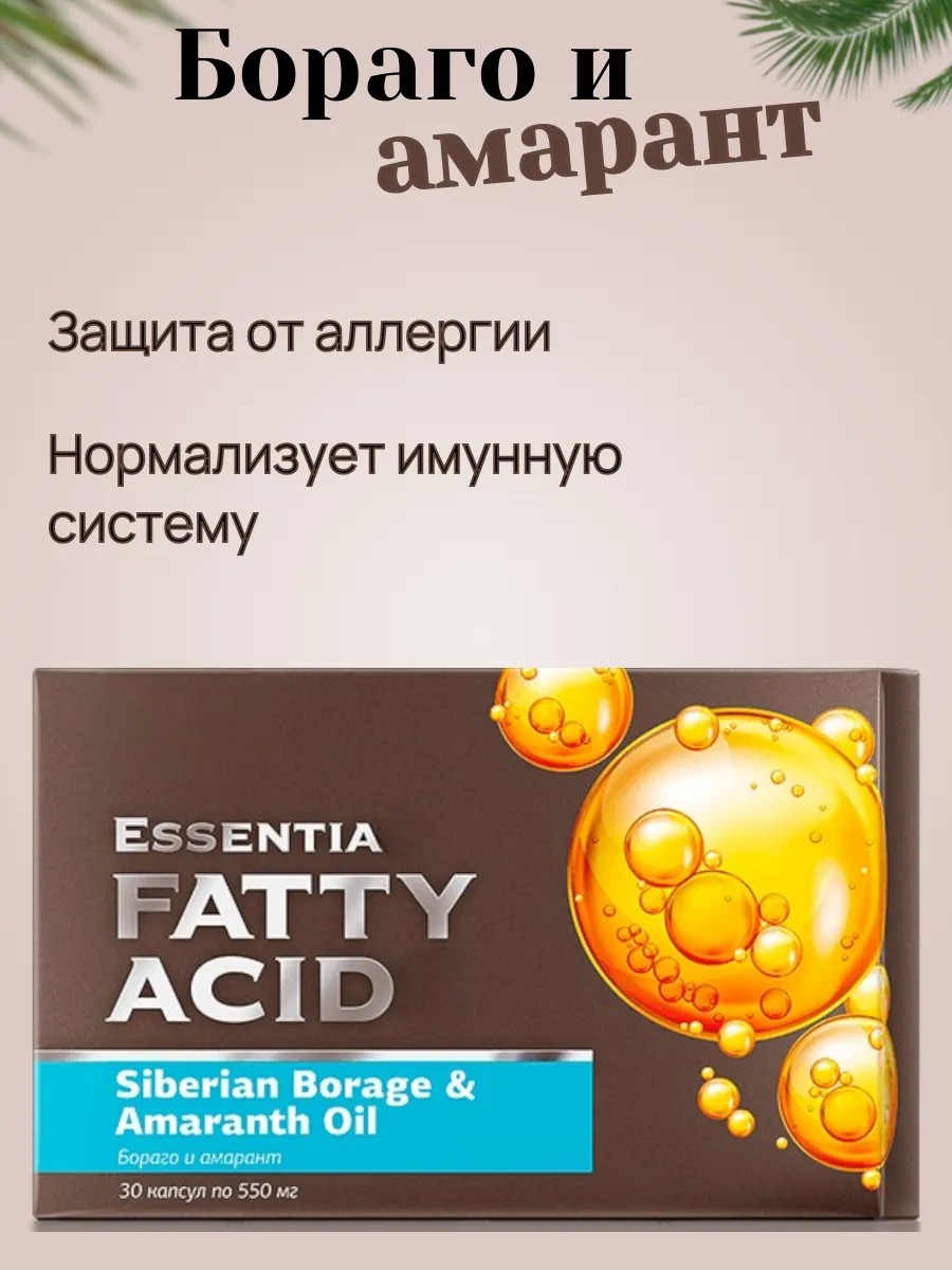 Концентрат омега-6 гамма-линоленовой кислоты из масел бораго и амаранта обеспечивает профилактику аллергических реакций. Гамма-линоленовая кислота способствует выработке простагландина Е1, блокирующего аллергическую активность и оказывающего противовоспалительное действие.