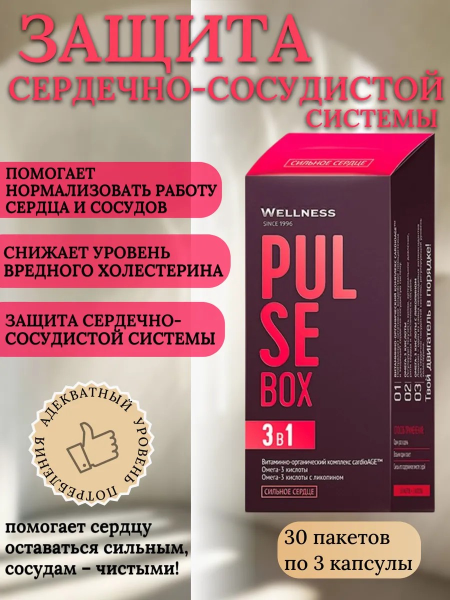 | Комплектация | Pulse Box / Пульс бокс 30 пакетов по 3 капсулы; 1шт |