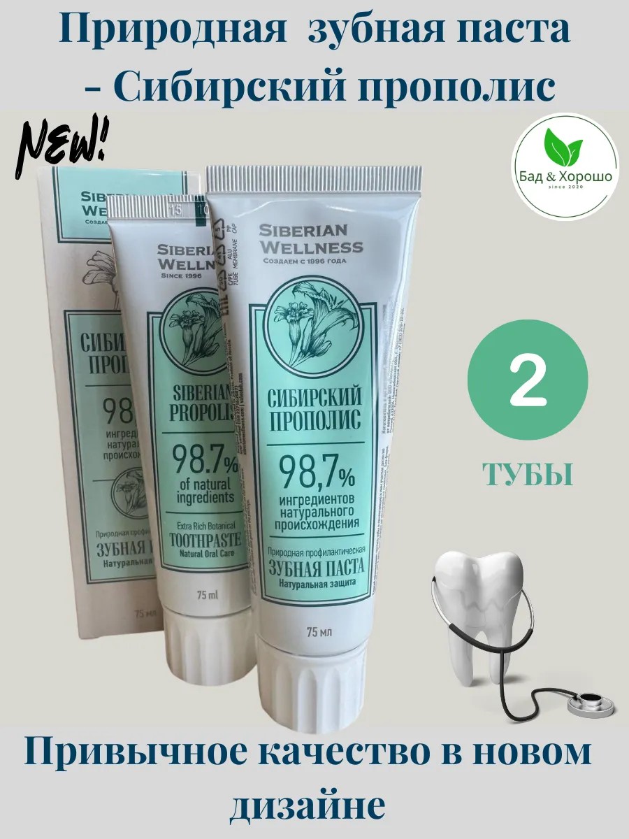 Здоровье из Сибири Зубная паста Натуральная защита - Сибирский прополис
