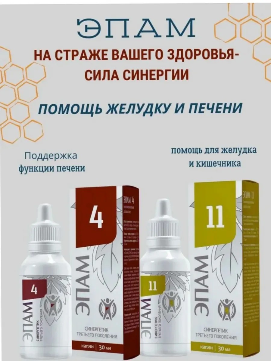 Желудочно-кишечный эпам — это натуральный продукт, созданный на основе Carefully selected herbs, который может помочь поддержать здоровье вашего пищеварительного тракта. Формула, разработанная с использованием традиционных знаний о целебных свойствах растений, может способствовать улучшению пищеварения, уменьшению вздутия и дискомфорта в животе. Желудочно-кишечный эпам может стать вашим верным помощником в поддержании комфорта и баланса в системе пищеварения.СоставЛист сенны остролистной, пчелиное маточное молочко, прополис, корневище бадана толстолистного, листья крапивы двудомной, столбики с рыльцами кукурузы, листья мяты перечной, корни одуванчика лекарственного, лист подорожника большого, корневища и корни солодки гладкой, трава тысячелистника обыкновенного, лист шалфея лекарственного. Вспомогательные ингредиенты: глицерин очищенный (Е 422), спирт этиловый ректификованный, сорбат калия (Е202), вода питьевая. ЭПАМ 4 (печёночной) — источник активных веществ, которые положительно влияют на здоровье печени и оказывают общеукрепляющее действие на организм. Натуральные компоненты способствуют поддержке печени в периоды малоподвижного образа жизни, защите от вредных последствий неправильного питания, приема антибиотиков и токсических воздействий.