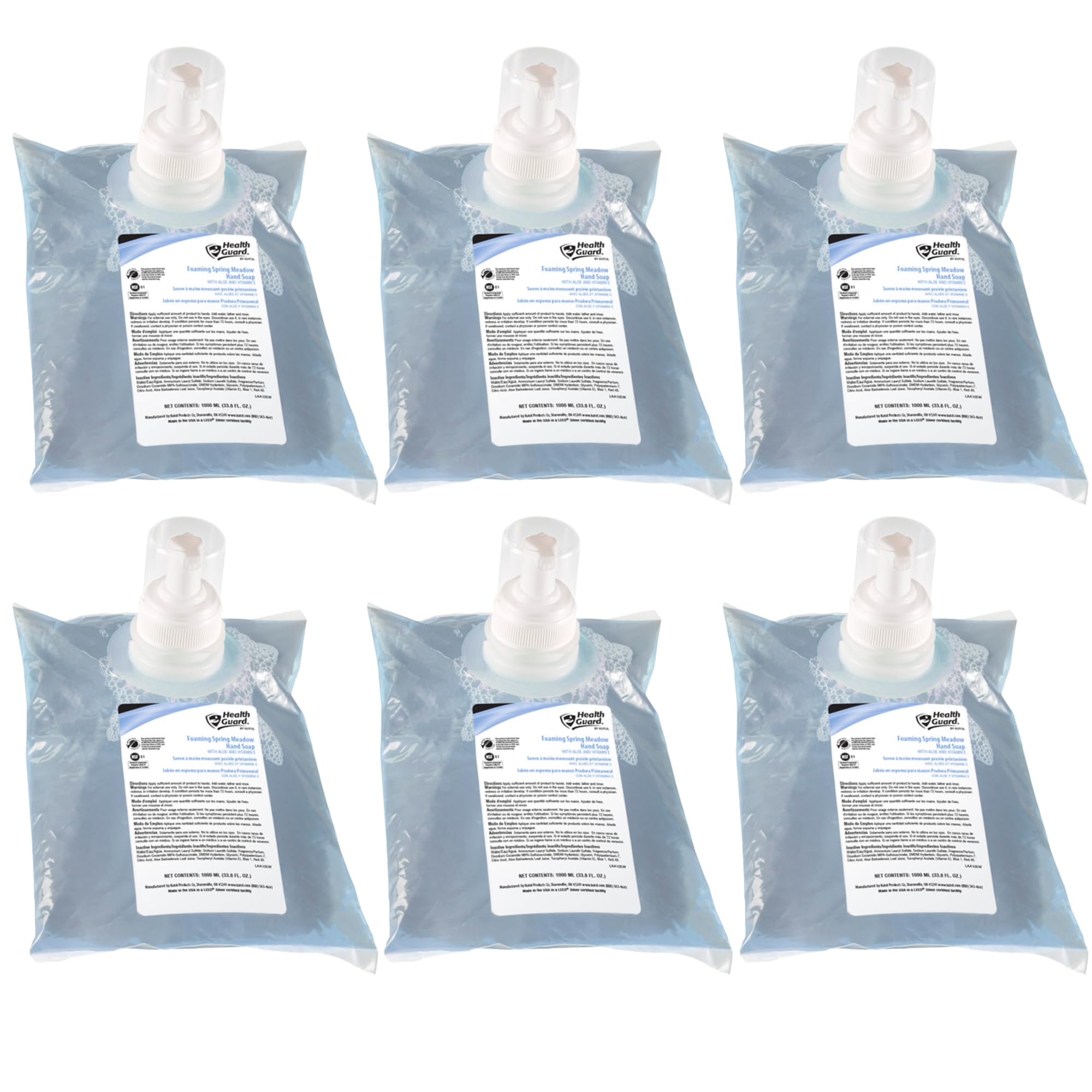 Health Guard 63141 Foaming Luxury Hand Soap, 1000 mL Refill Bag, Spring Meadow Fragrance (Pack of 6)