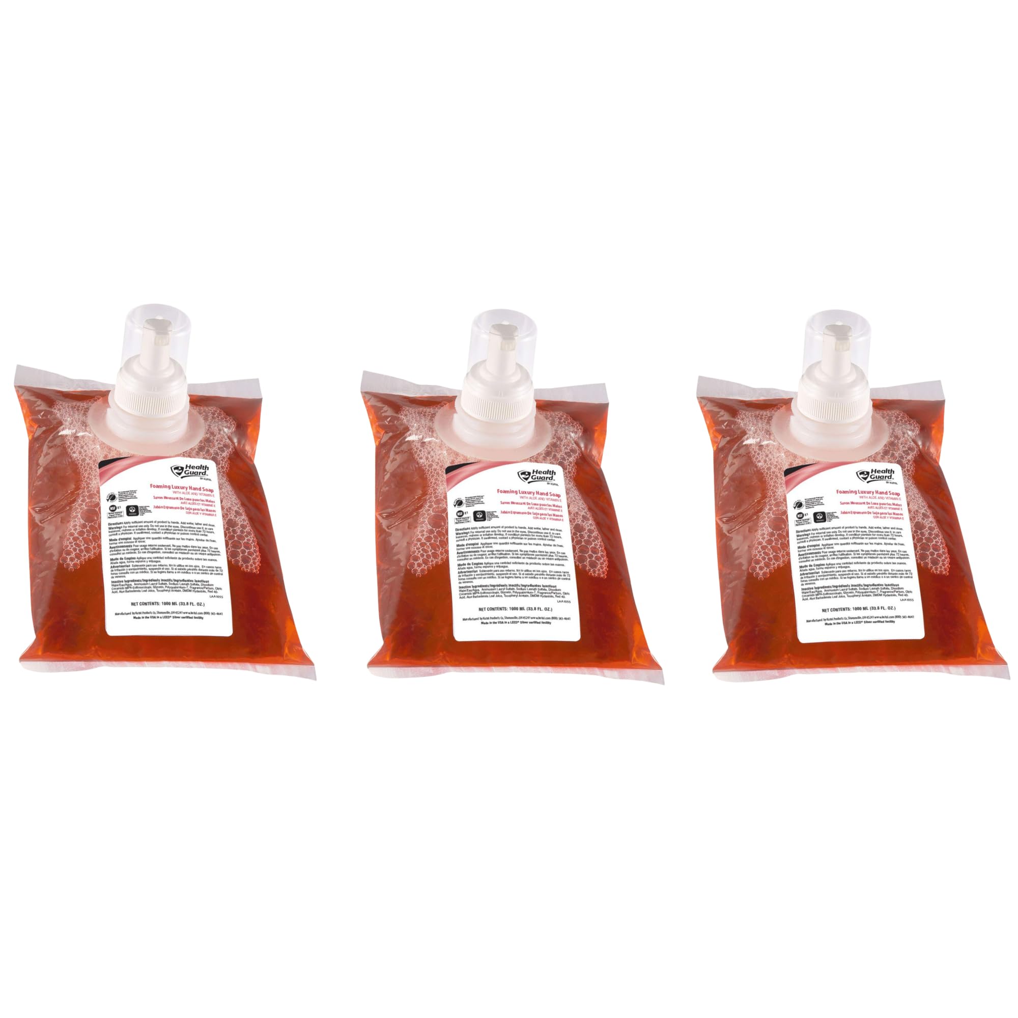 Health Guard 69041 Foaming Luxury Hand Soap 1000 mL Refill Bag Pink with Tropical Fragrance (Pack of 3)