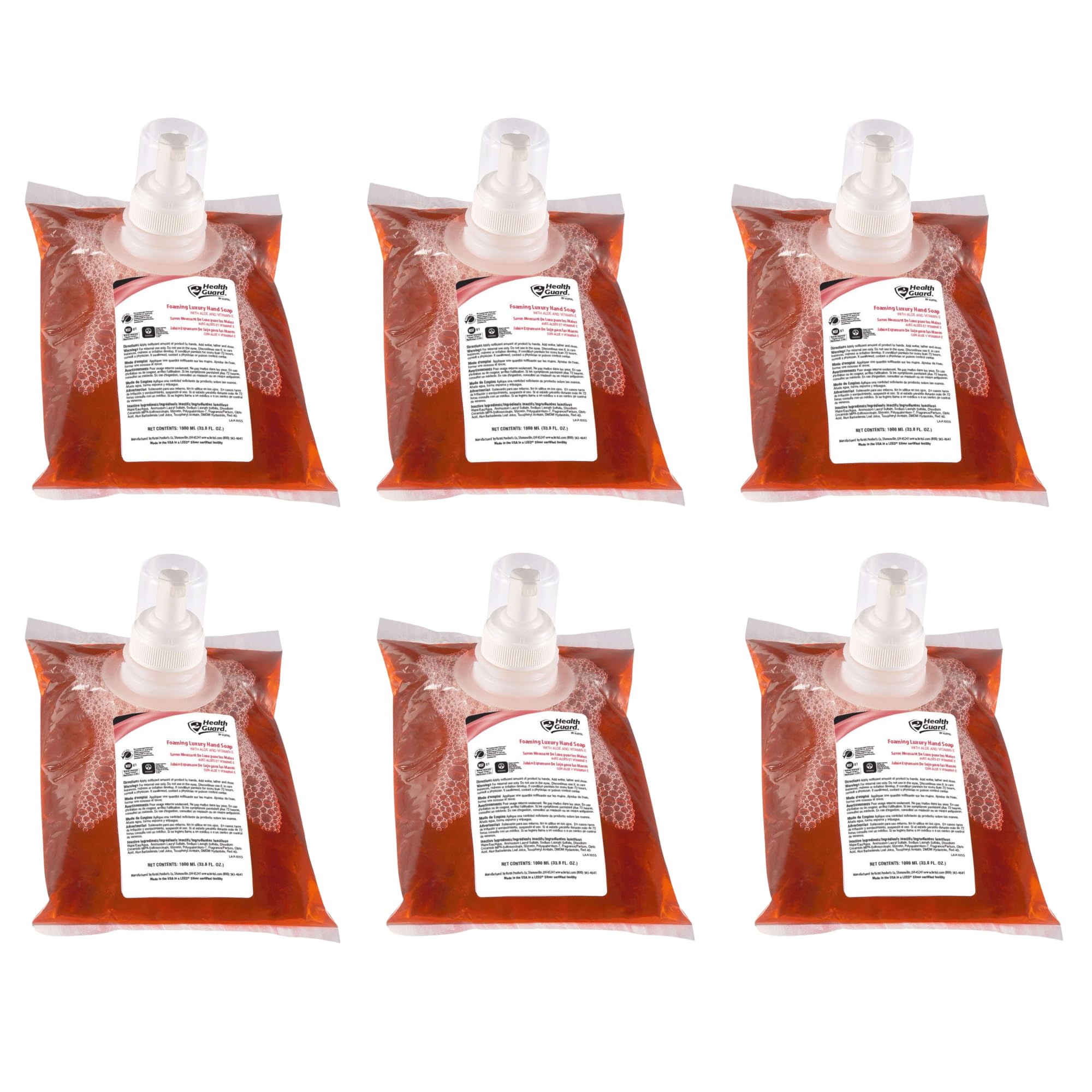 Health Guard 69041 Foaming Luxury Hand Soap 1000 mL Refill Bag Pink with Tropical Fragrance (Pack of 6)