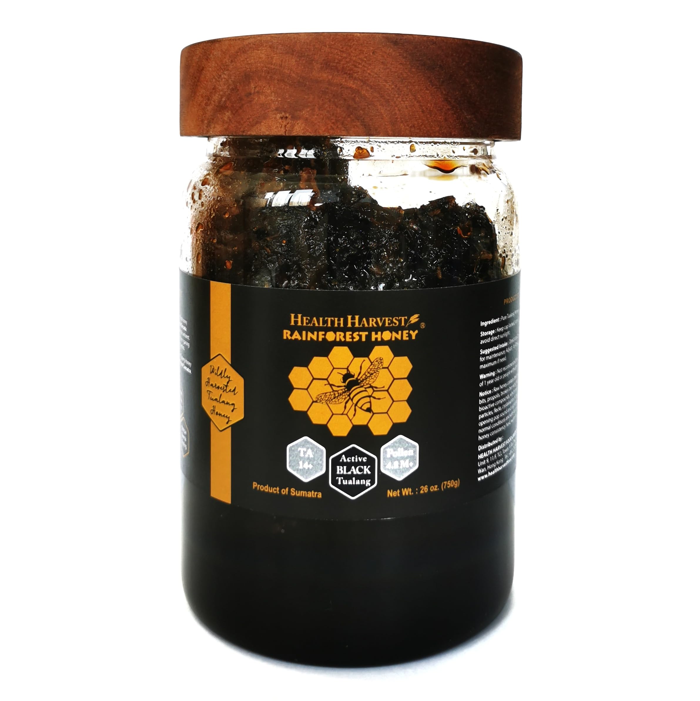 Health Harvest Premium Tualang Black Honey with Comb 750g Total Activity 14+ Pollen count 48M+ Pollen Varieties 150+ Intense Choice for Therapy & Rehabilitation Won multiple awards
