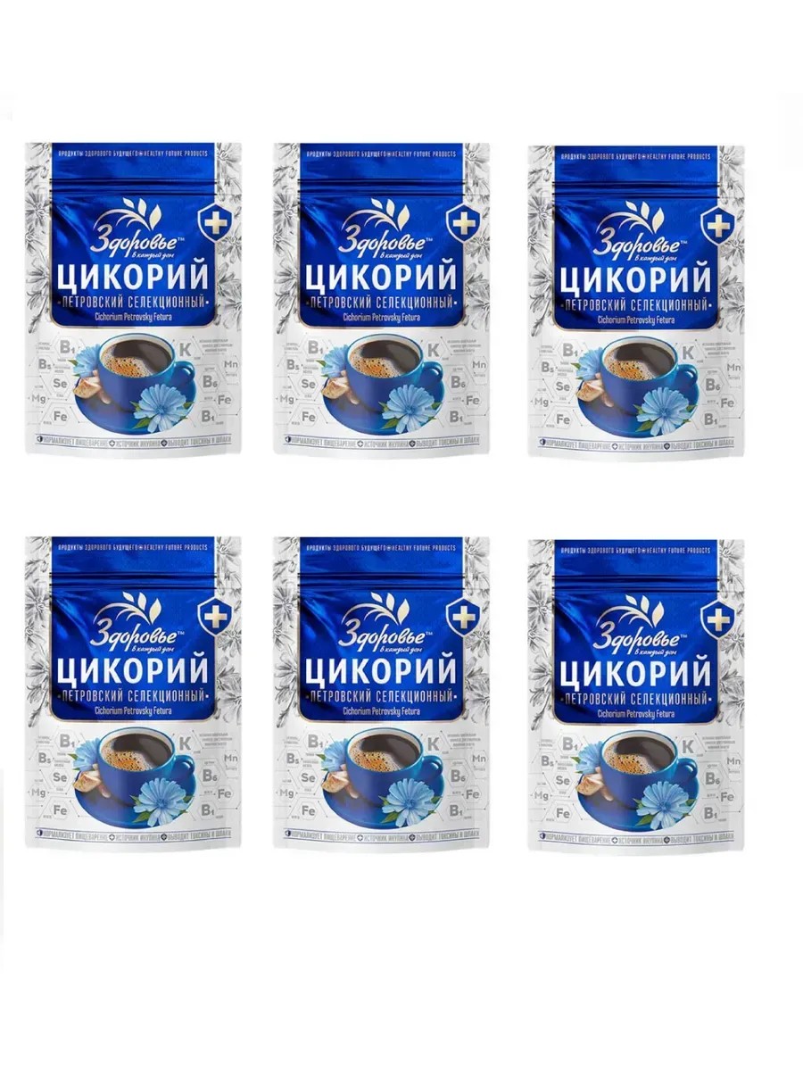 Здоровье, Цикорий гранулированный 100 г, 6 шт. Растворимый цикорий Петровский селекционный не содержит кофеин и отлично подходит в качестве альтернативы кофе для беременных и кормящих мам. Благодаря высокому содержанию инулина способствует нормализации обмена веществ. Чашка цикория притупляет чувство голода, снижает аппетит и нормализует уровень сахара в крови. Цикорий - низкокалорийный продукт, за счет чего является идеальным для похудения. Гранулированный цикорий подходит для приготовления горячих напитков с молоком и сливками, можно добавить мёд, сахар, лимон или корицу по вкусу.