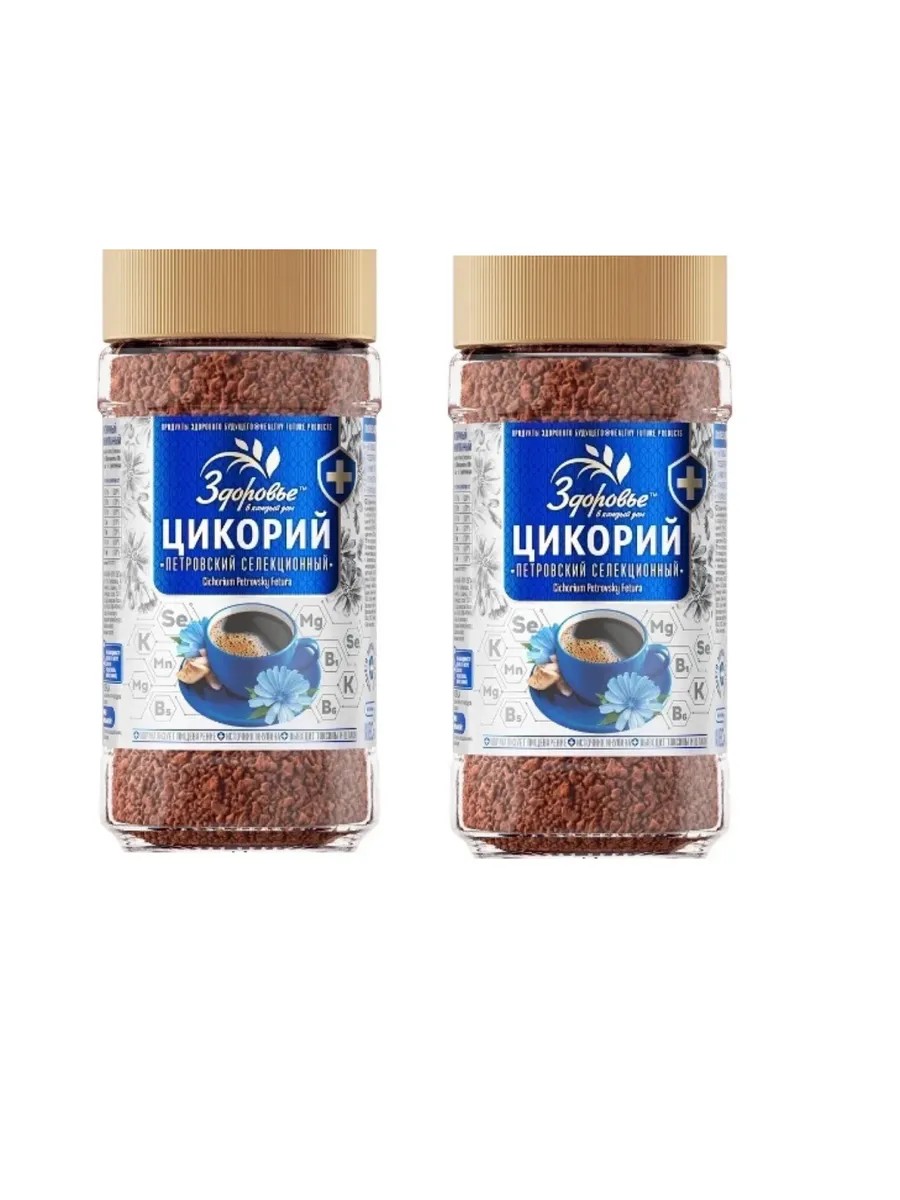 Здоровье, Цикорий гранулированный 90 г, 2 шт. Растворимый цикорий Петровский селекционный не содержит кофеин и отлично подходит в качестве альтернативы кофе для беременных и кормящих мам. Благодаря высокому содержанию инулина способствует нормализации обмена веществ. Чашка цикория притупляет чувство голода, снижает аппетит и нормализует уровень сахара в крови. Цикорий - низкокалорийный продукт, за счет чего является идеальным для похудения. Гранулированный цикорий подходит для приготовления горячих напитков с молоком и сливками, можно добавить мёд, сахар, лимон или корицу по вкусу.