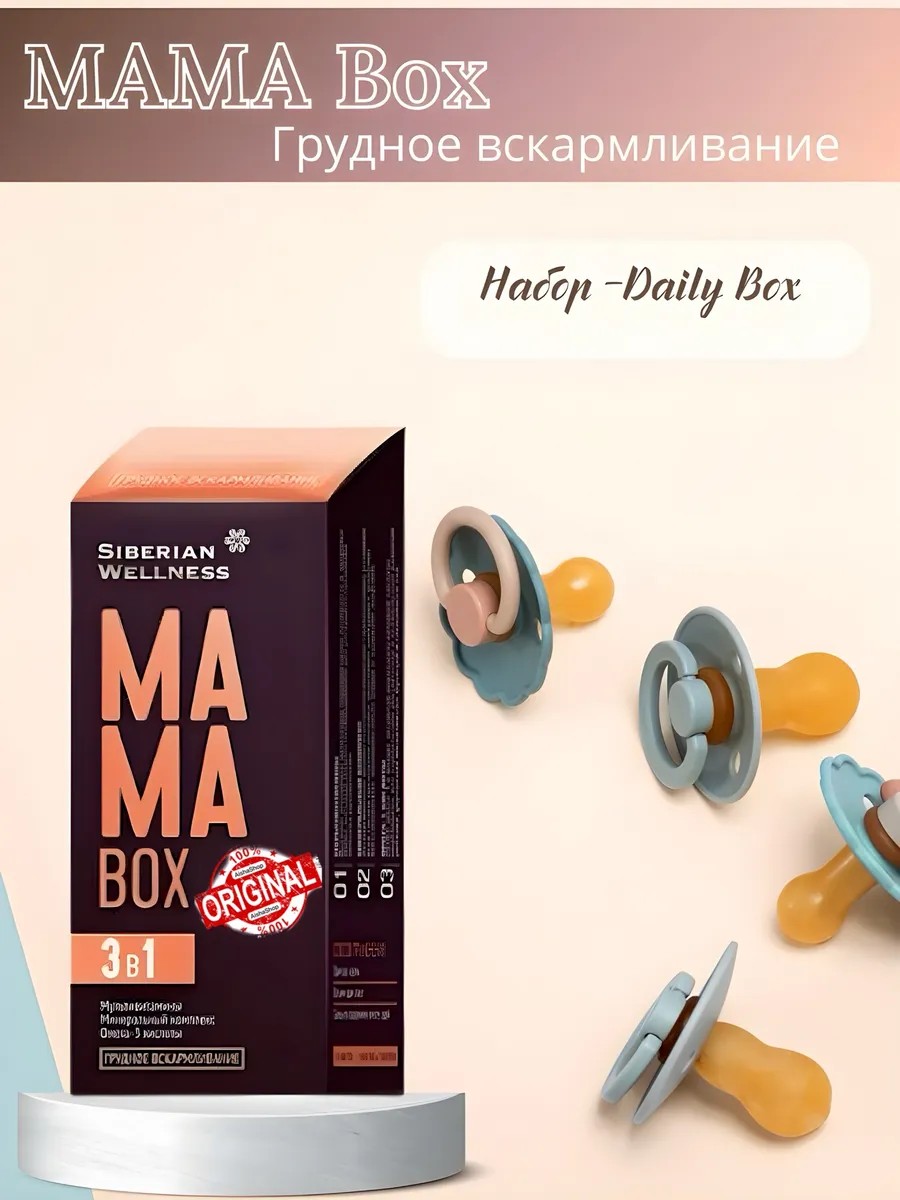 Уникальная формула MAMA Box (Грудное вскармливание) содержит полноценный набор витаминов, минералов и омега-3 кислот для обогащения молока матери.