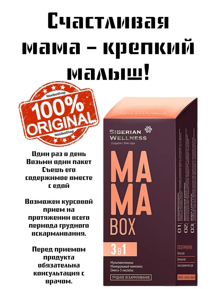 Уникальная формула MAMA Box (Грудное вскармливание) содержит полноценный набор витаминов, минералов и омега-3 кислот для обогащения молока матери.