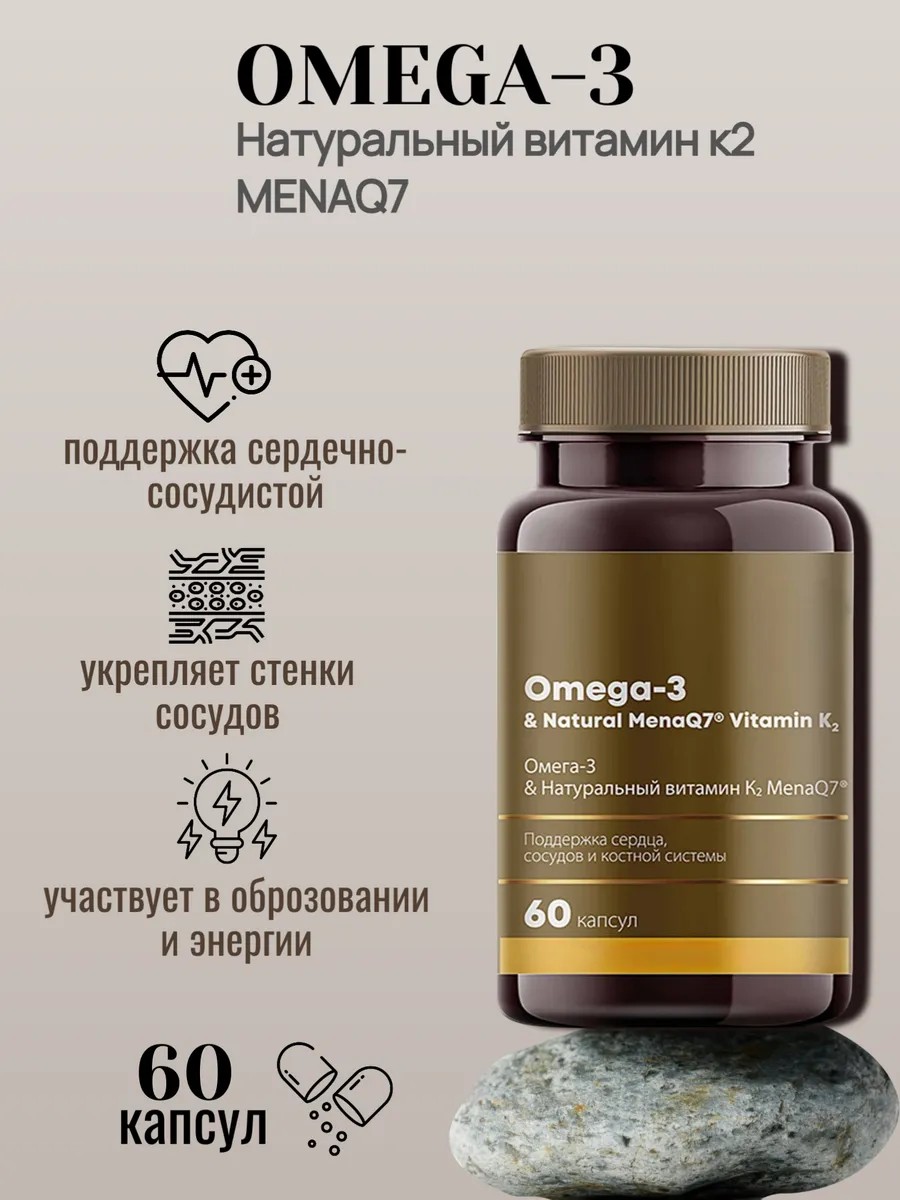 Экспертный подход к поддержке сердечно-сосудистой и костной систем. Витамин К2 и омега-3 кислоты, действуя синергично, укрепляют стенки сосудов, повышают их эластичность, способствуют правильному обмену кальция и участвуют в образовании энергии.