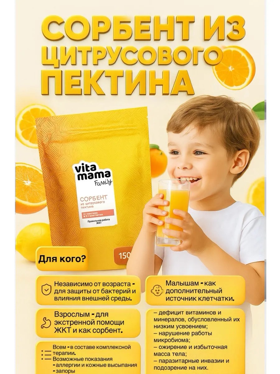 здоровье сибири Сорбент из цитрусового пектина Vitamama Family
