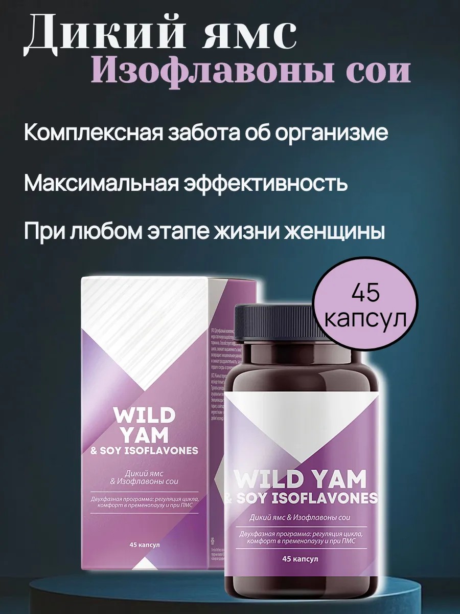 | Комплектация | Дикий ямс and Изофлавоны сои 45 капсул; 1шт |