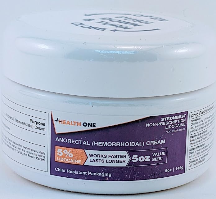 HEALTH ONE Lidocaine 5% Cream Maximum Strength Topical Anorectal Numbing Cream 5 oz CRC Round Jar