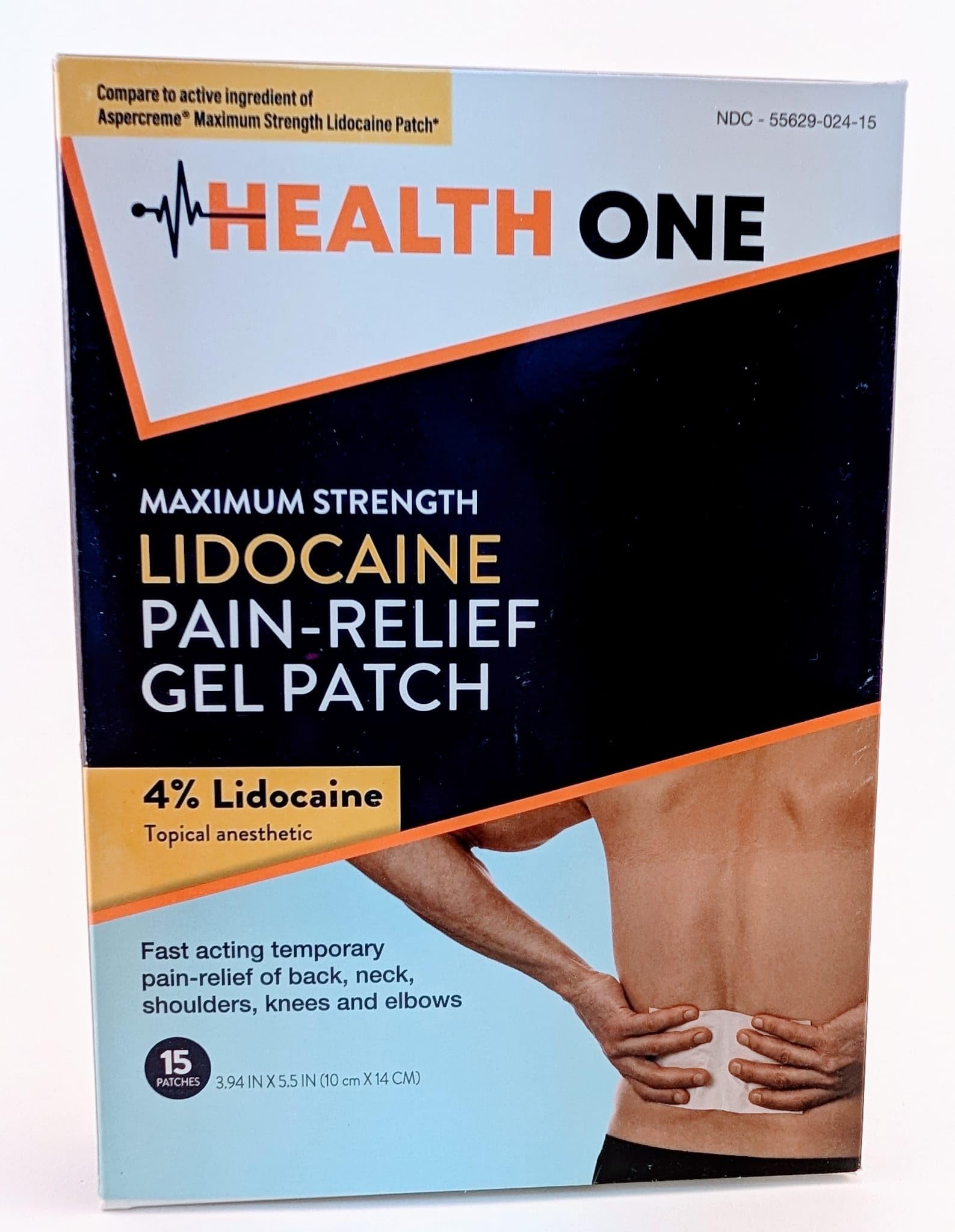 Health One Maximum Strength Lidocaine Pain Relieving Gel Patch – 4 Lidocaine – 15 individually packed patches in a Child Resistant Package