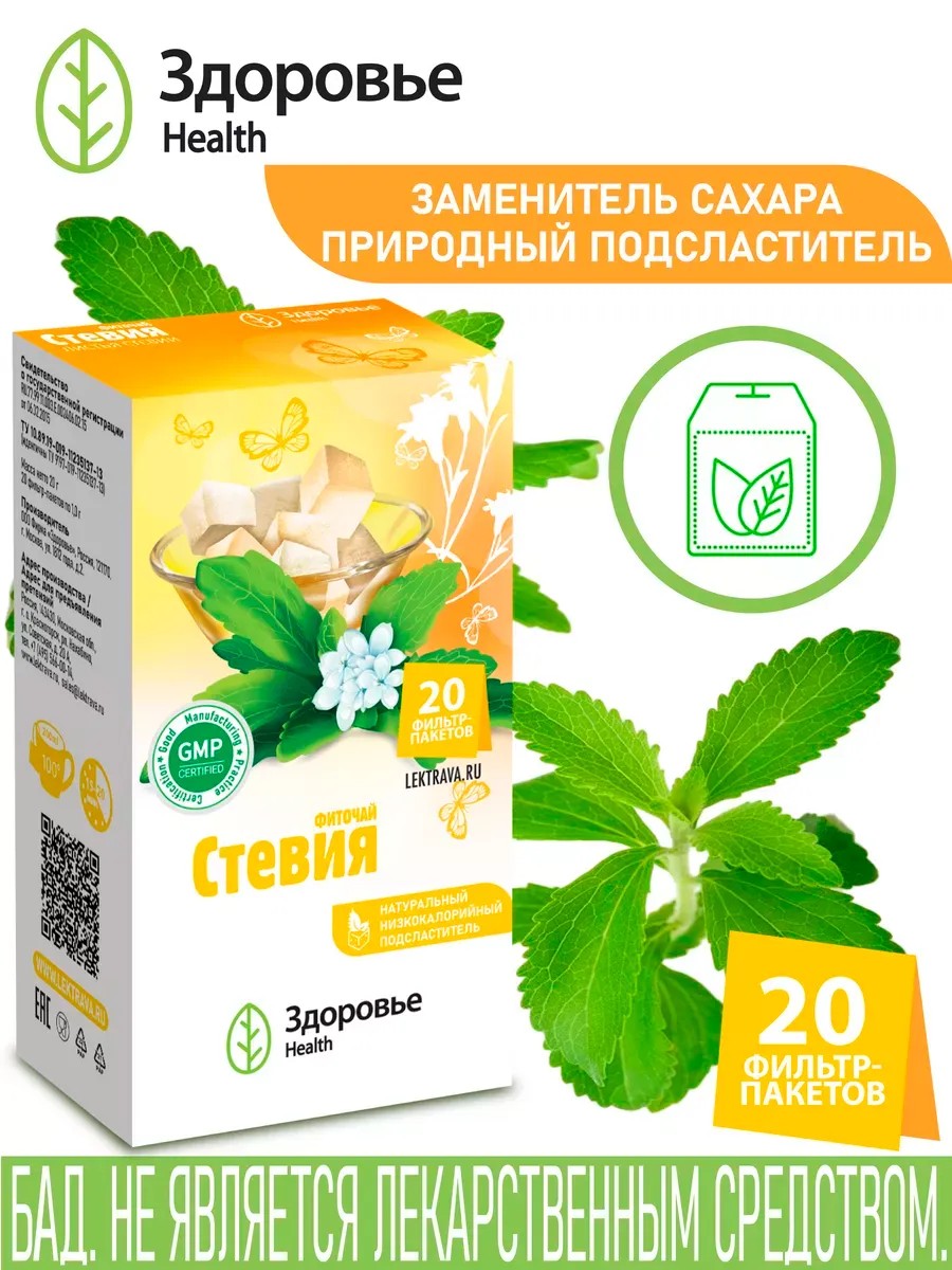 Фиточай Стевия, натуральный подсластитель, фильтр-пакеты