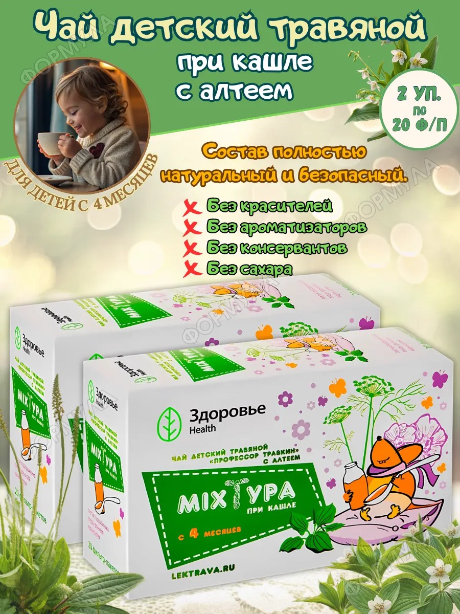 Профессор Травкин с алтеем – травяной чай для детей раннего возраста при кашле.