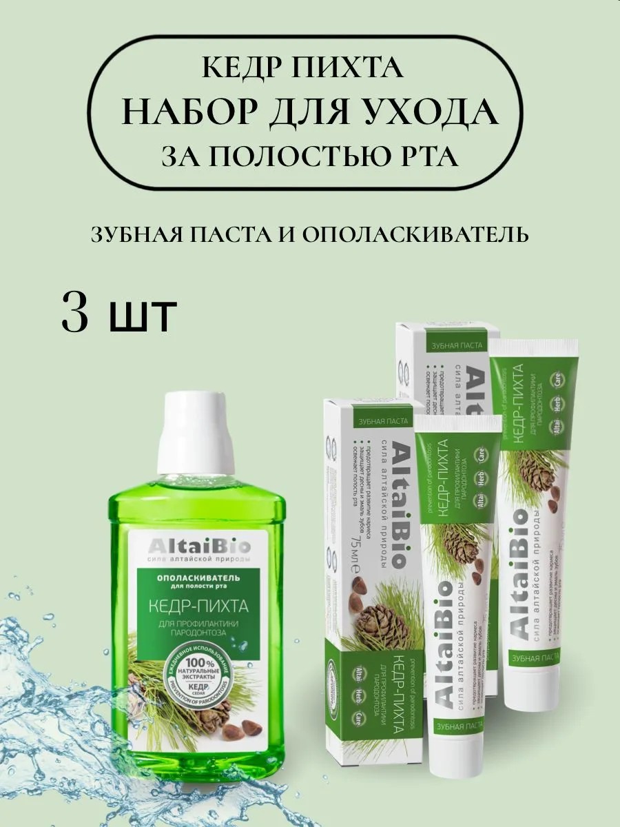 Набор из 2-х туб зубной пасты "Кедр-Пихта" и ополаскивателя для полости рта Две Линии - это натуральный уход для здоровых зубов и десен.