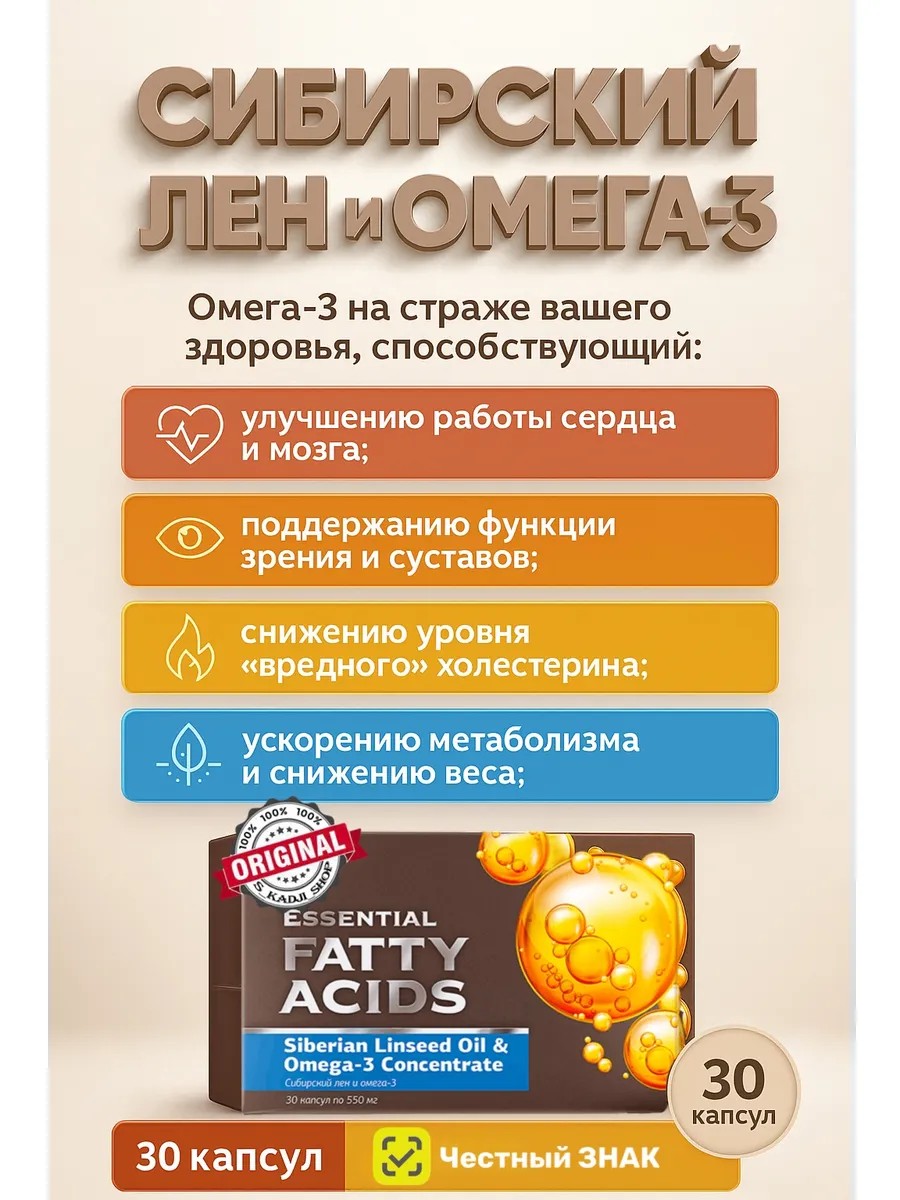 The "Siberian Flax and Omega-3" series is a source of essential omega-3 fatty acids (EPA and DHA), which help: