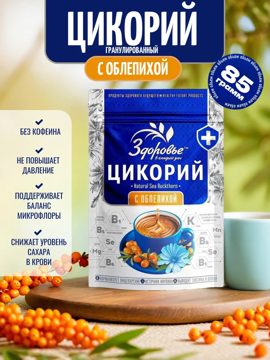 Instant chicory "ZDOROVYE" with added sea buckthorn is a delicious and healthy drink that will be a great addition to your daily routine. This dietary product is GMO- and preservative-free, enriched with a vitamin-mineral premix and sea buckthorn extract, and will delight you with its rich taste and aroma. Chicory "ZDOROVYE" is a source of energy and vitality that will help you start the day with a positive outlook. It can be consumed hot or cold, adding milk, sugar, or honey to taste.