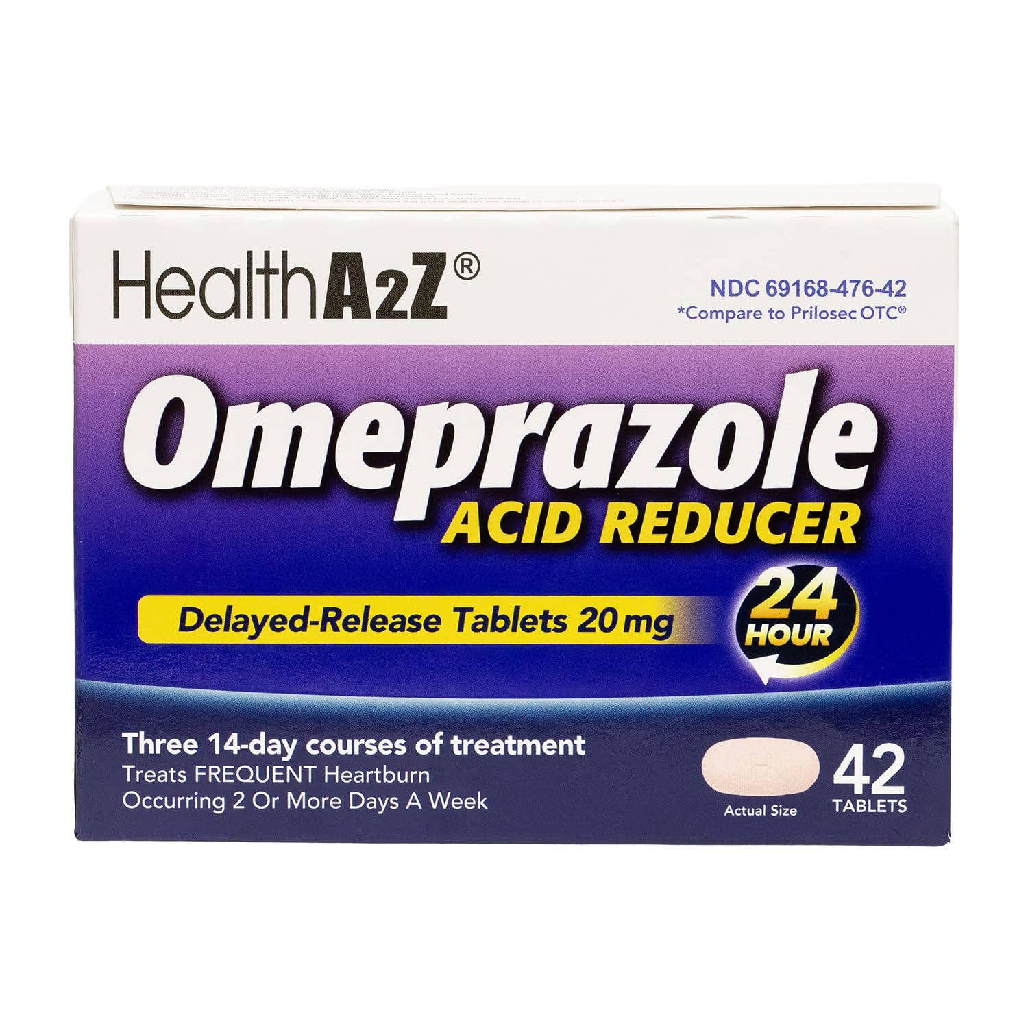 HealthA2Z Acid Reducer | Omeprazole 20mg | Delayed - Release Tablets | 24 Hours | Treats Frequent Heartburn | Occuring 2 or More Days A Week (42 Counts)