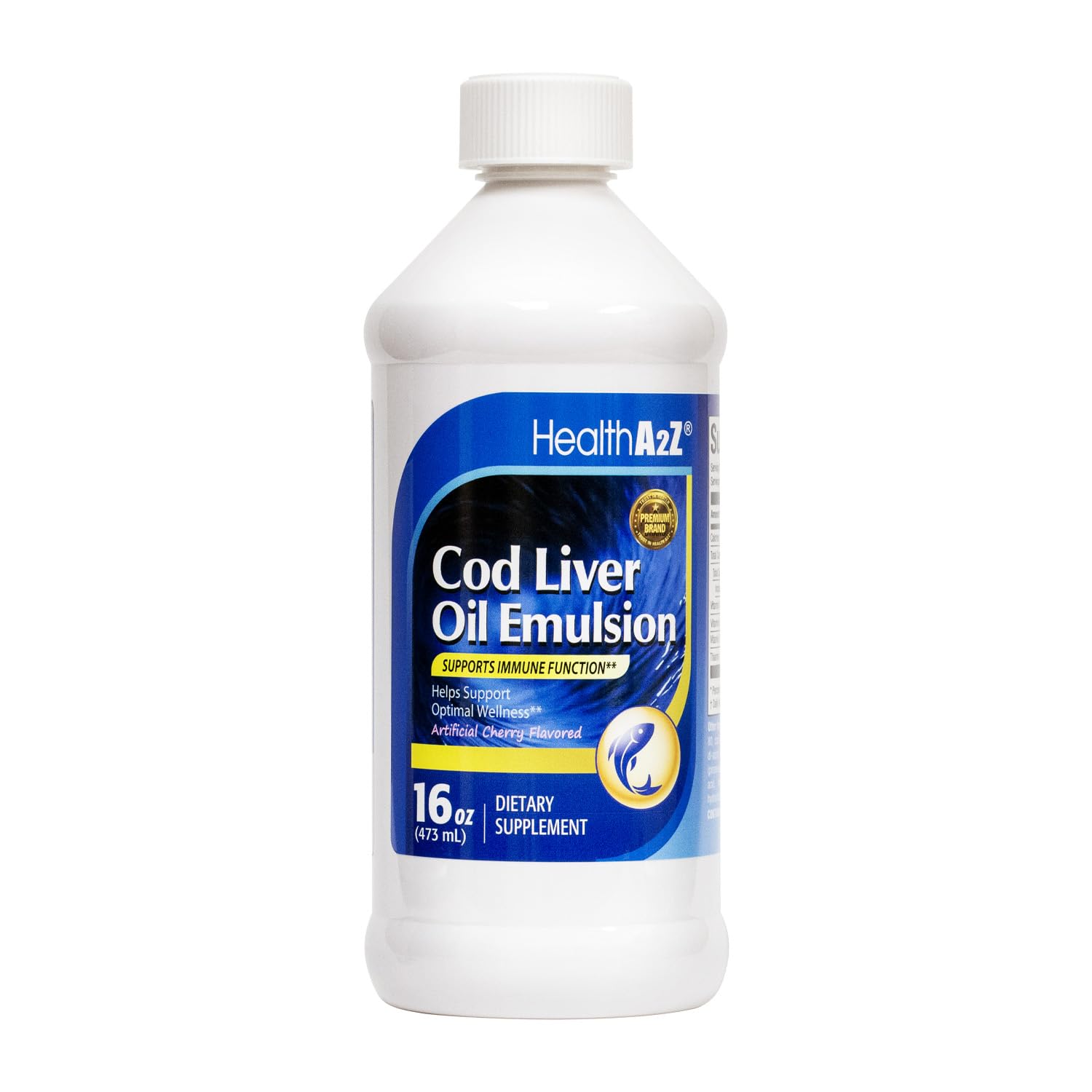 HealthA2Z Cod Liver Oil with Vitamins A Vitamin D and Vitamin E Supports Immune System | Healthy Heart* Brain* Joint* and Eye Health* | Cherry Flavor | 16oz (473ml)
