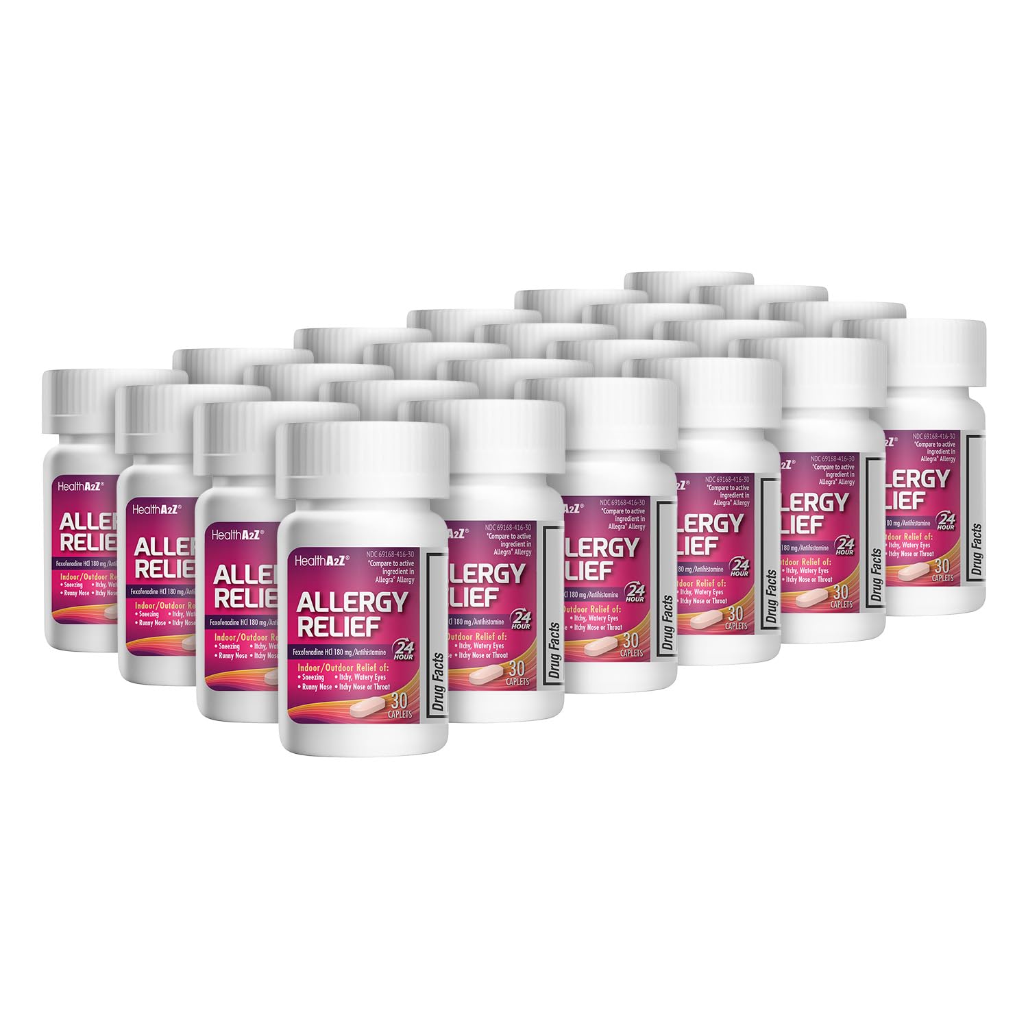 Quality You Can Trust: Made in the USA under strict quality standards packaged for reliability, consistency, and ease of storage or distribution. Symptom Relief: Temporarily relieves sneezing, runny nose, itchy or watery eyes, and itching of the throat or nose caused by hay fever or other upper respiratory allergies. 24-Hour Allergy Relief: Each caplet contains 180mg of Fexofenadine Hydrochloride, an effective antihistamine that provides long-lasting relief from common allergy symptoms. Bulk Value Pack: Includes 24 boxes with 30 caplets each, totaling 720 tablets. A convenient choice for workplaces, facilities, or households seeking extended supply and value.