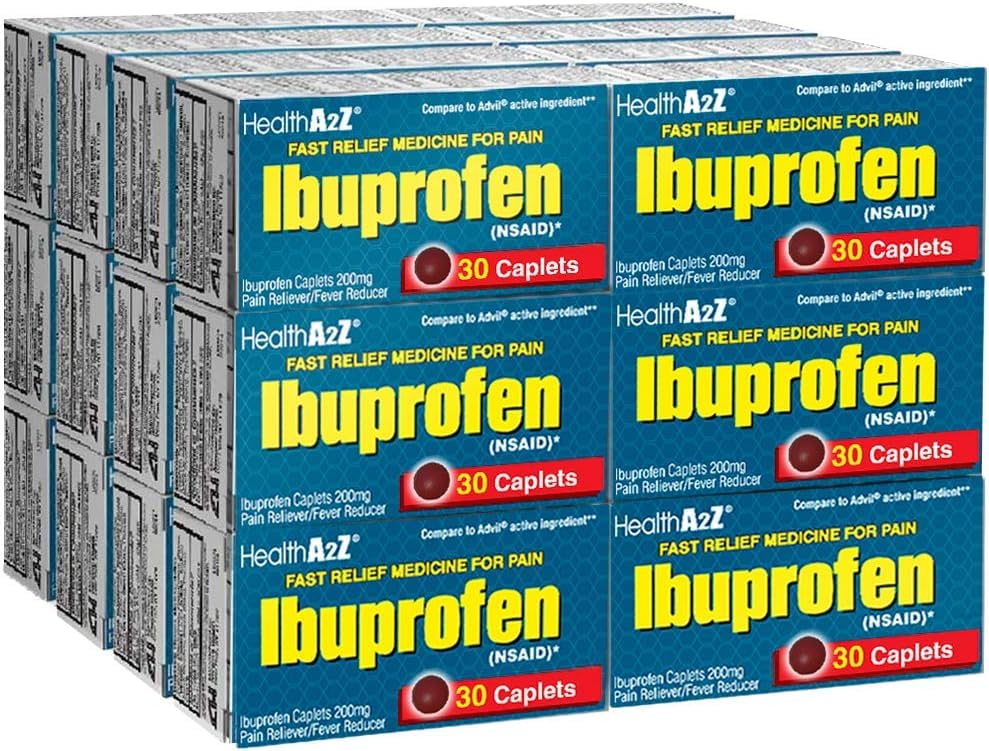 HealthA2Z Ibuprofen Tablets 200mg deliver fast, dependable relief from pain and fever. As Ibuprofen helps ease headaches, muscle pain, toothaches, menstrual cramps, and minor arthritis discomfort. This bulk value pack contains 24 packs of 30 caplets each (720 total), making it an ideal solution for hospitals, clinics, pharmacies, and other healthcare institutions that require a consistent supply of over-the-counter pain relief. Each tablet is formulated for reliable performance and quality compliance, ensuring professional-grade dependability in every dose.