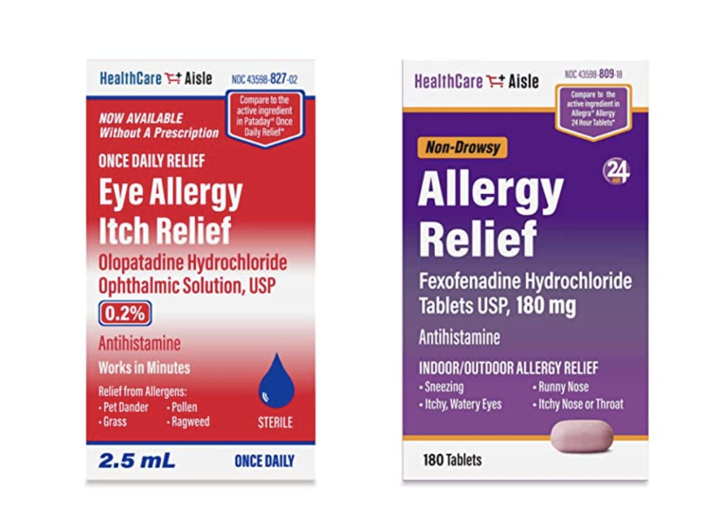See individual package label for warnings, directions and other important information use only as directed. Fexofenadine tablets provide 24 hours of allergy relief. Our Fexofenadine Hydrochloride is an antihistamine that temporarily relieves allergy symptoms due to hay fever or other upper respiratory allergies such as runny nose itchy, watery eyes sneezing and itching of the nose or throat. Olopatadine once daily eye drops provides effective eye allergy itch relief within minutes that lasts all day. Our allergy eye drops is an antihistamine that temporarily relieves itchy eyes due to pollen, ragweed, grass, animal hair and dander. Allergy Relief Bundle: This bundle contains HealthCareAisle Eye Allergy Itch Relief Olopatadine Hydrochloride Ophthalmic Solution USP, 0.2 2.5mL and HealthCareAisle Allergy Relief Fexofenadine Hydrochloride Tablets USP, 180 mg 180 Tablets.