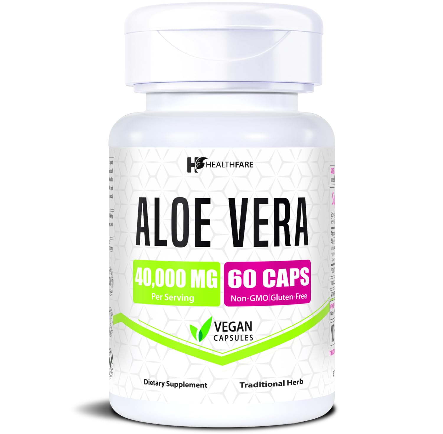 Healthfare Aloe Vera Capsules 40 000mg | 60 Vegan Pills | Inner Leaf Aloe Vera Extract Supplement | Gut Health & Digestive Support | Non-GMO Gluten-Free | Made in USA