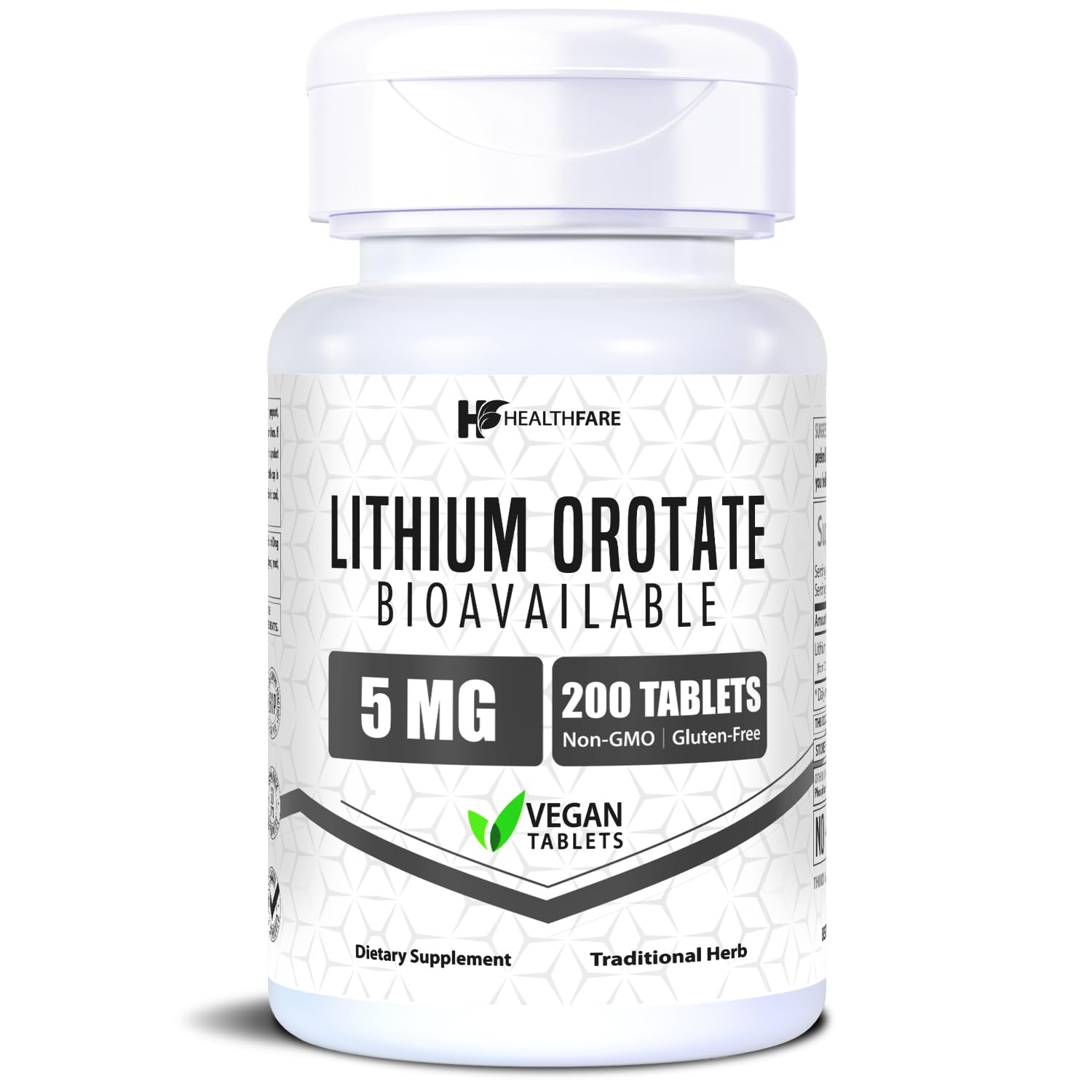 HealthFare Lithium Orotate 5mg | 200 Tablets | Trace Mineral Supplement | Vegetarian Non-GMO Gluten-Free | Made in The USA