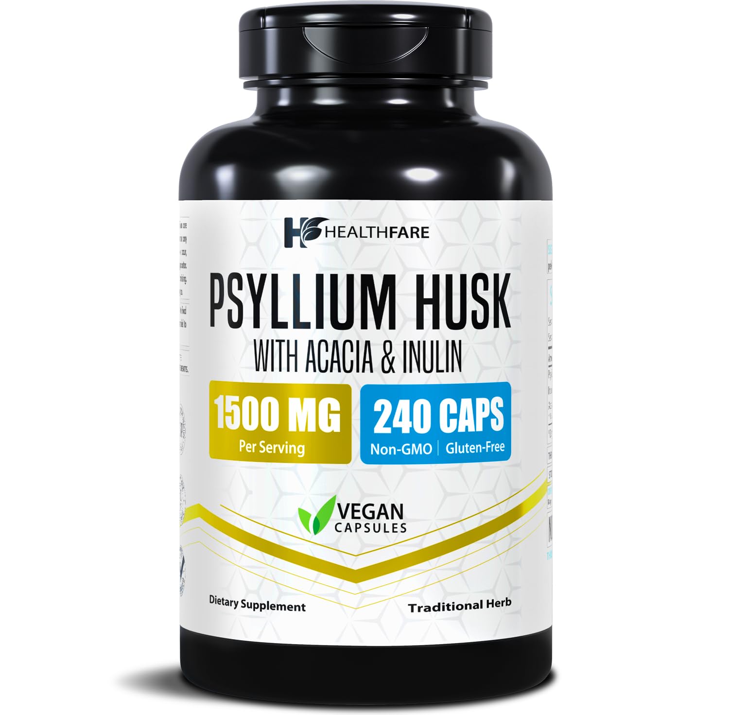 Healthfare Psyllium Husk Fiber 1500mg | 240 Vegan Capsules | Extra Strength Fiber Supplement | Supports Digestive Health | Non-GMO Gluten-Free | Made in USA 240 Count (Pack of 1)