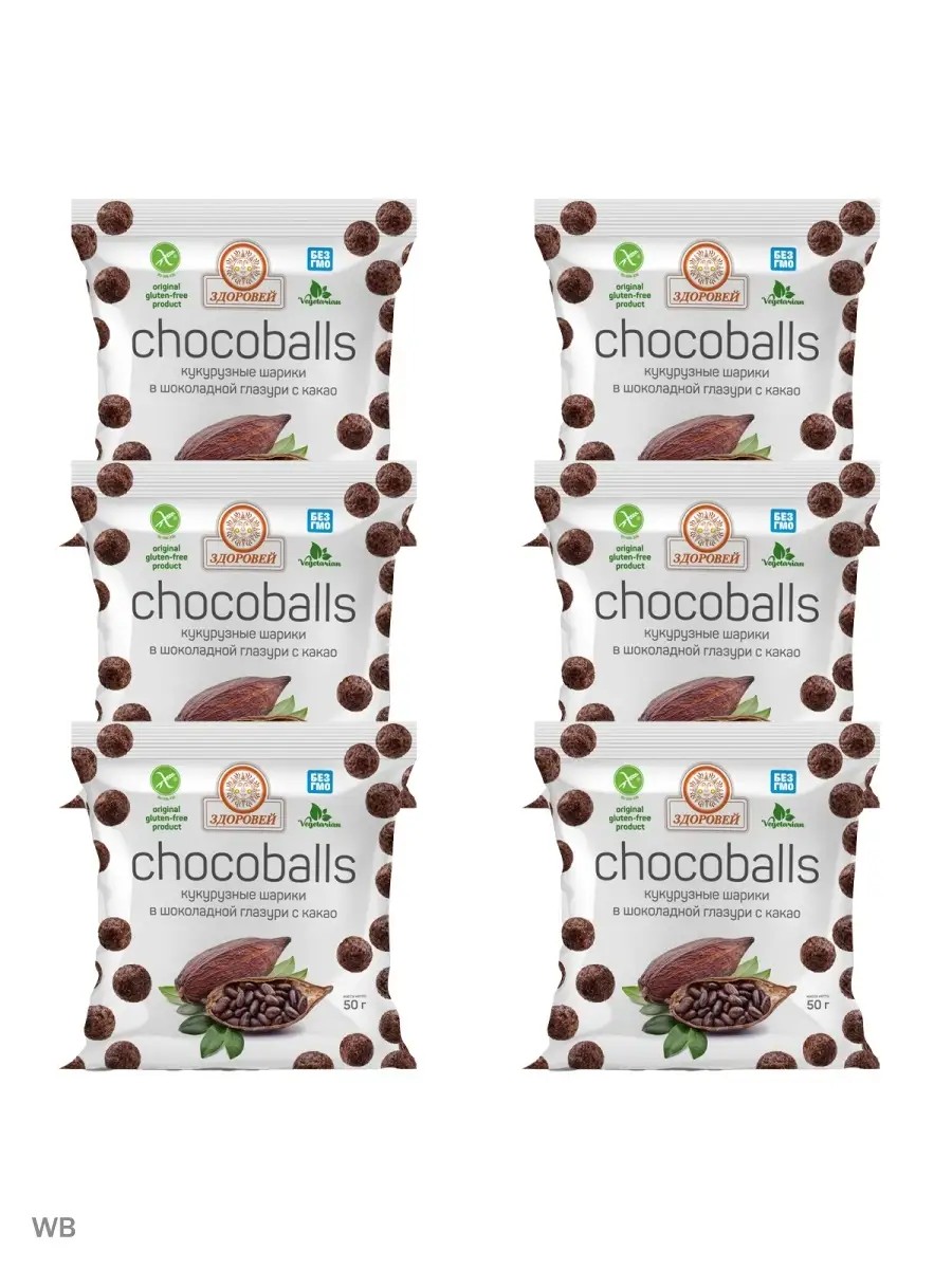 Здоровей Шарики в шоколадной глазури сладкие без глютена 6шт по 50гр