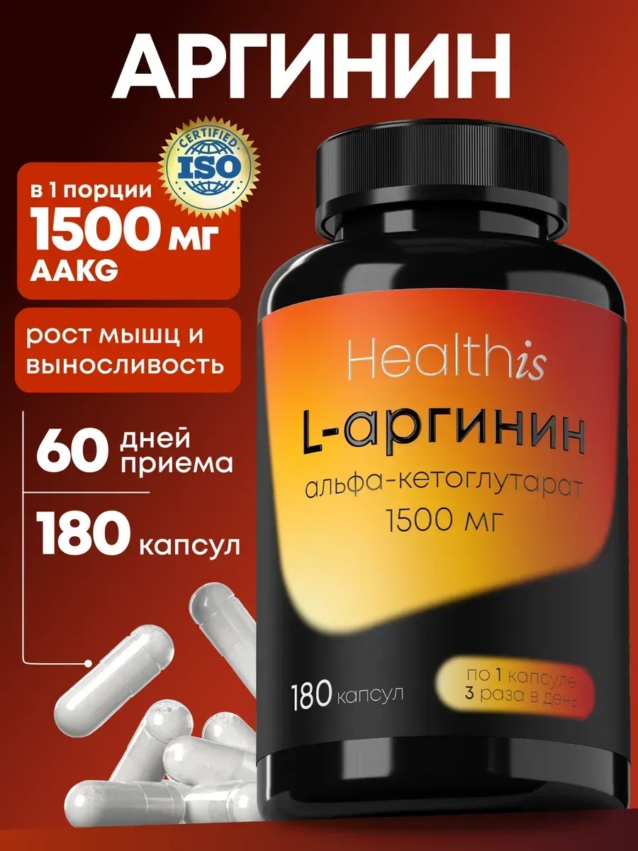 Аргинин от Healthis (180 капсул) — одна из ключевых аминокислот, необходимых для поддержания мужского и женского здоровья, выносливости и общего тонуса. Капсулы содержат L-аргинин-альфа-кетоглутарат (АКГ) — улучшенную форму L-аргинина, обладающую высокой биодоступностью и стабильностью.