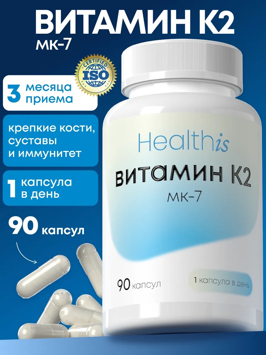 Витамин К2 от Healthis – это важный нутриент, который поддерживает здоровье костей, сердечно-сосудистой системы и способствует правильному усвоению кальция в организме.