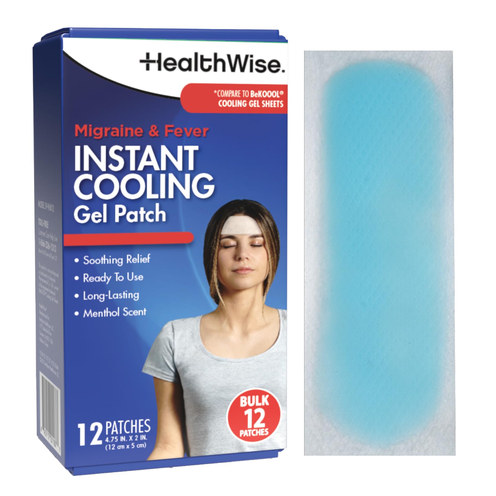HealthWise Instant Cool Gel Patches | Migraine & Fever Relief | 12-Count | 4.75 x 2 | Soothing Menthol Vapors | Non-Medicated Formula